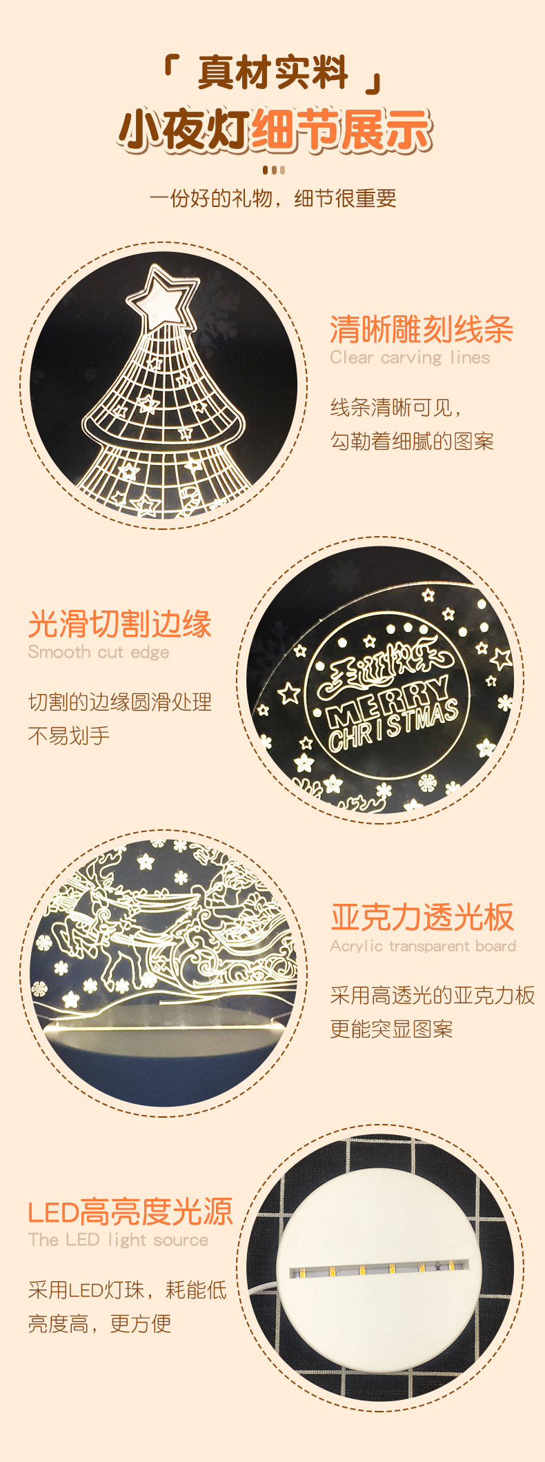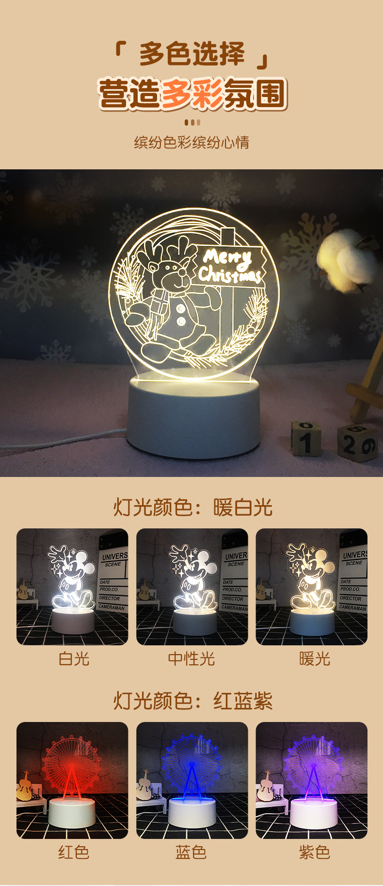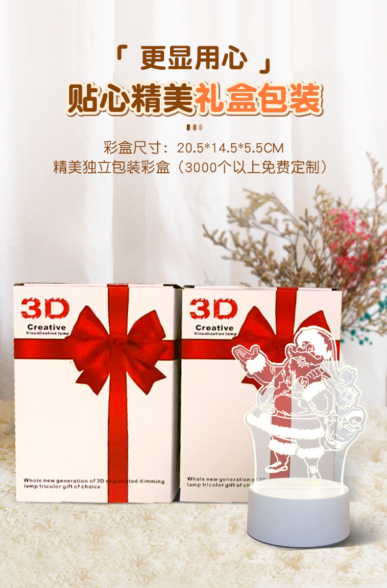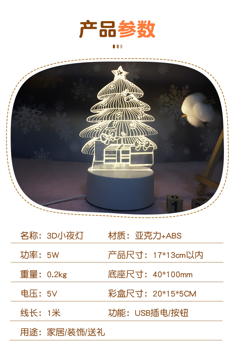 크리스마스 아크릴 3D 야간등 어린이 침실 분위기 장식 침대 옆 테이블 램프 선물 LED 조명