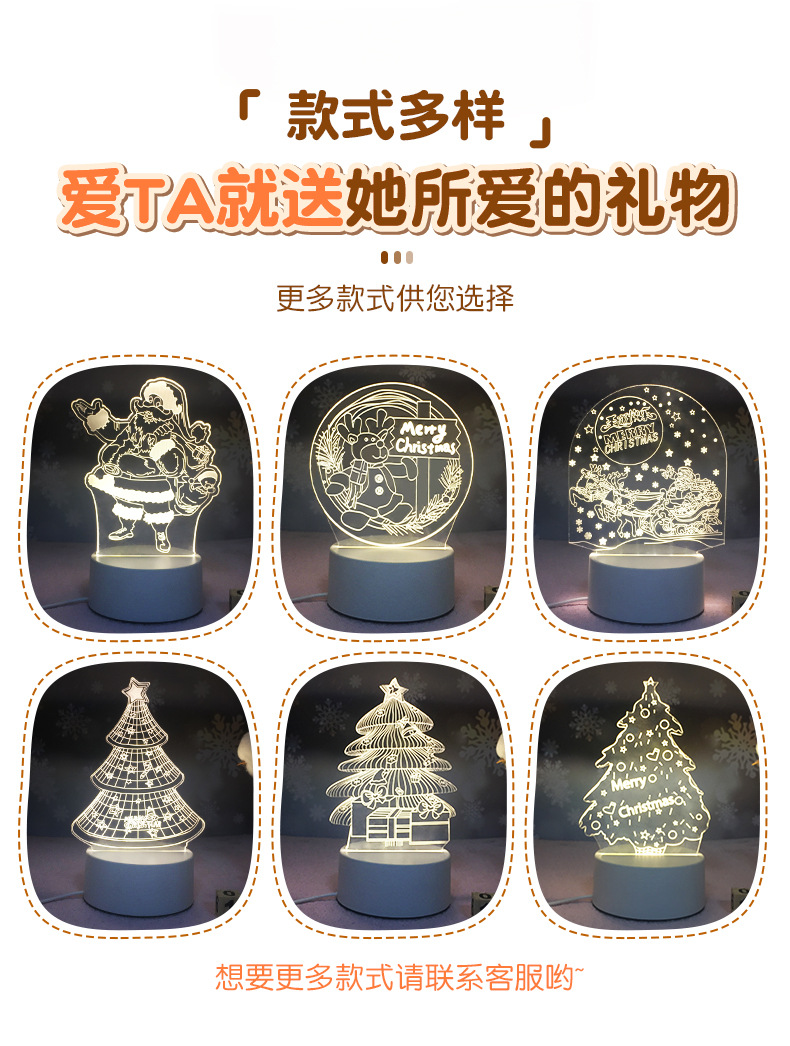 크리스마스 아크릴 3D 야간등 어린이 침실 분위기 장식 침대 옆 테이블 램프 선물 LED 조명스토어 가기