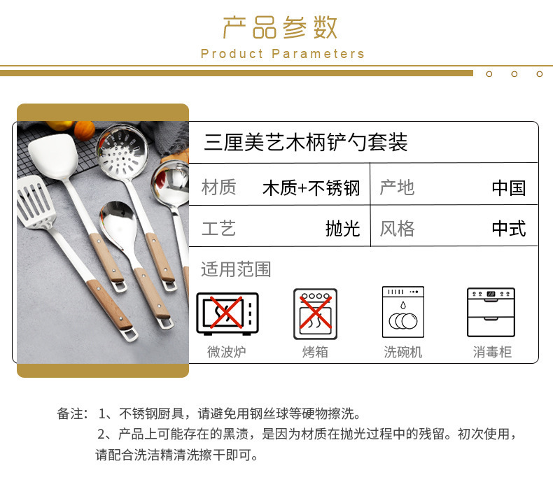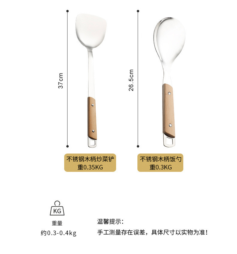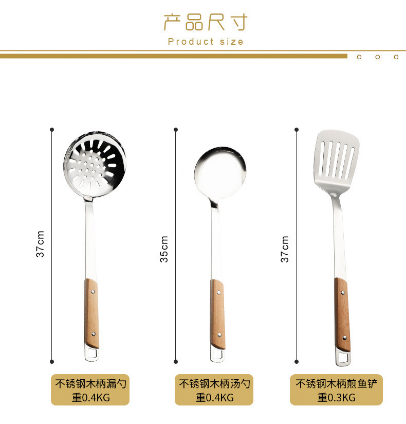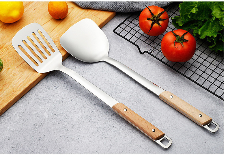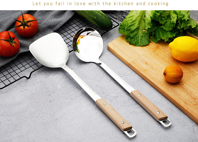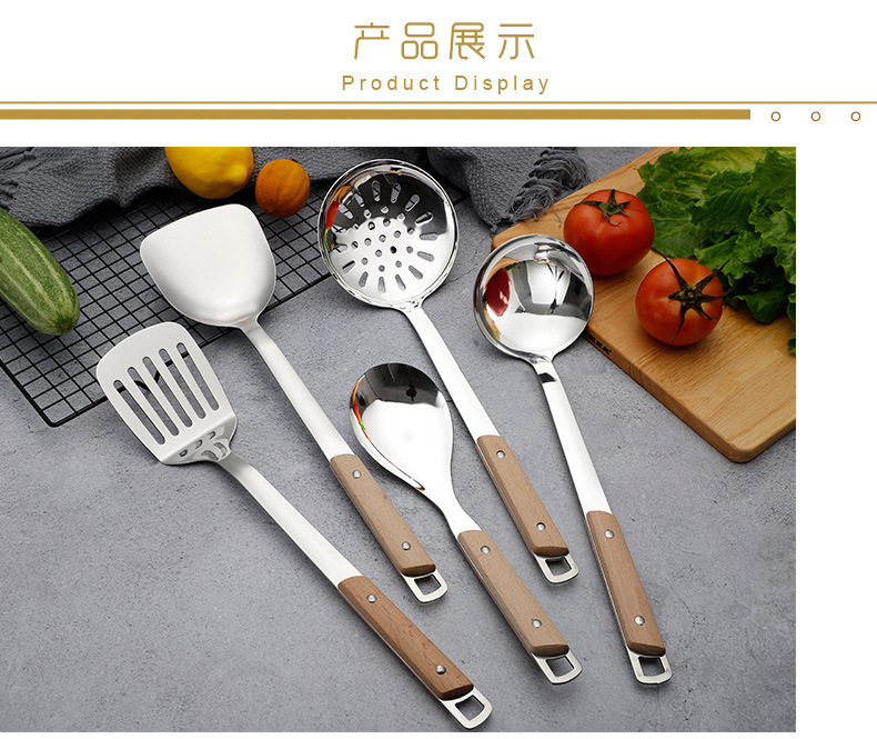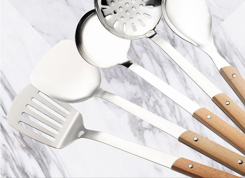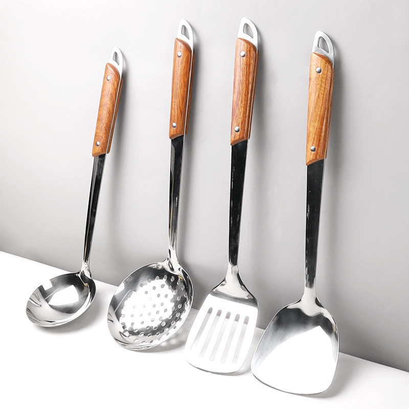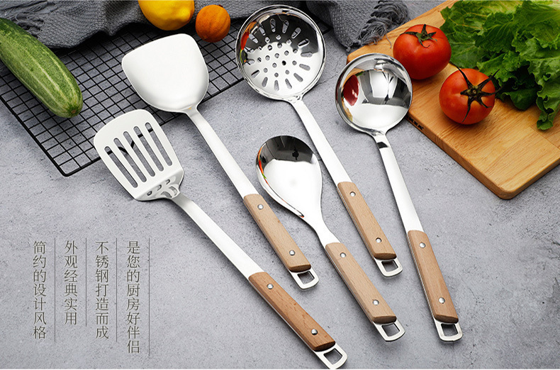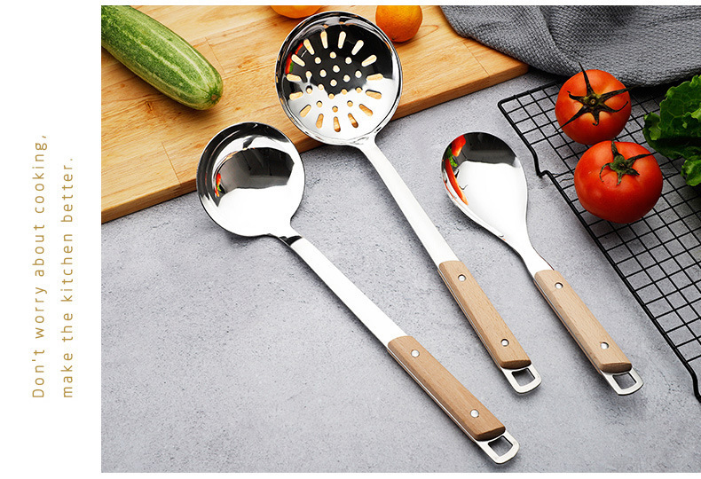 스테인레스 스틸 주걱 수프 스푼 튀김 주걱 단단한 나무 끓는 방지 밥 스푼 요리 주걱 주방 용품 세트