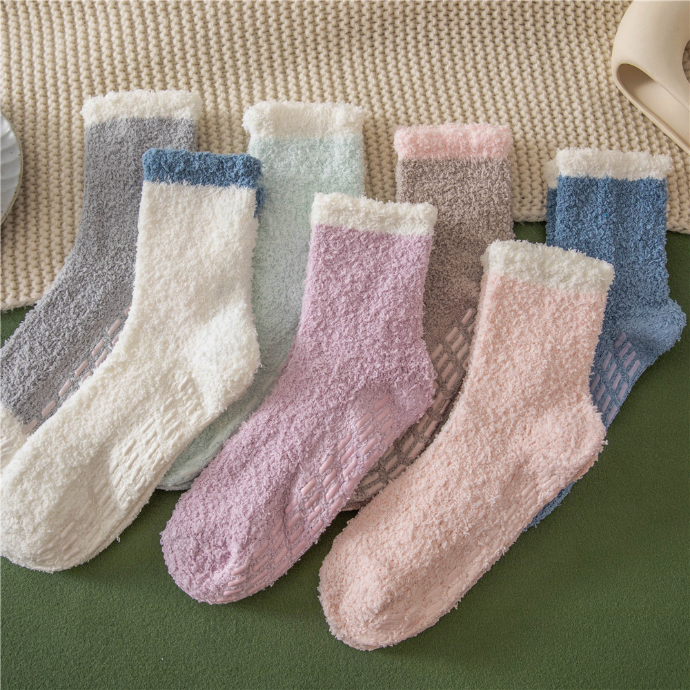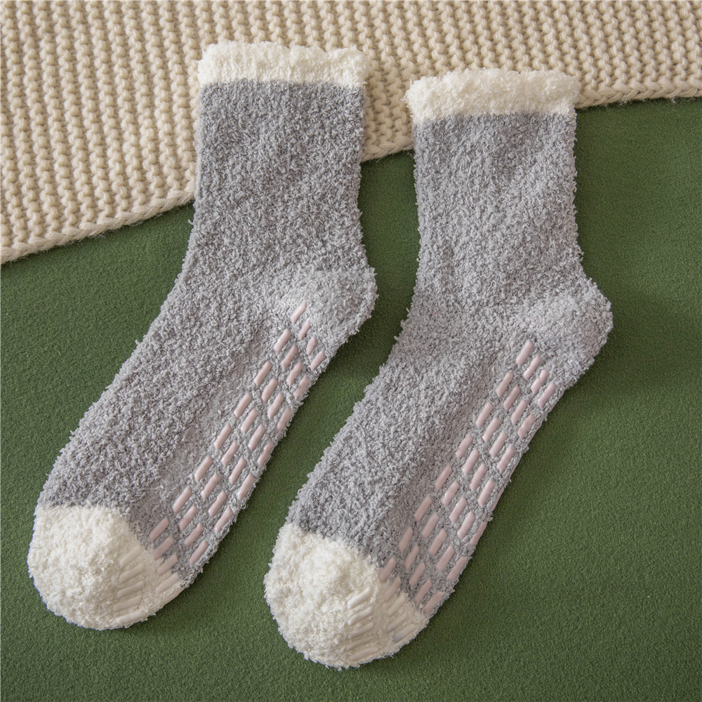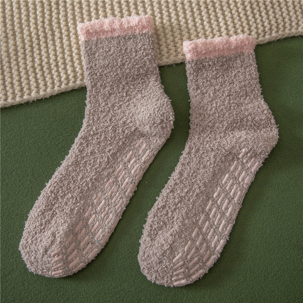 발바닥에 젤이 도포되어 미끄럼 방지, 보풀이 없는 산호 벨벳 양말 슬리퍼 양말, 여성용 겨울 중목 양말