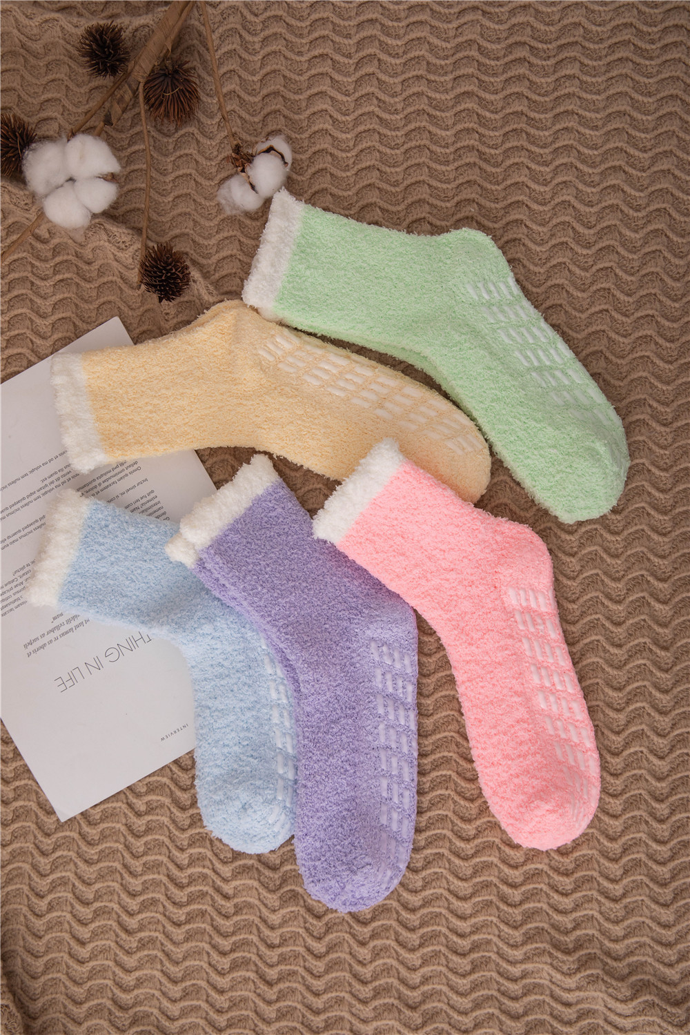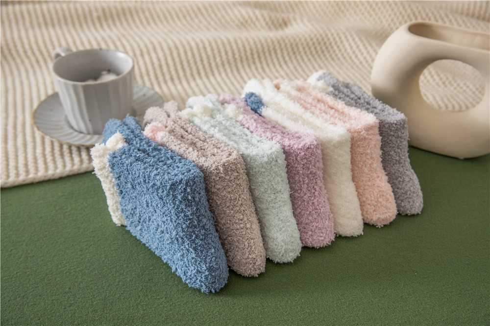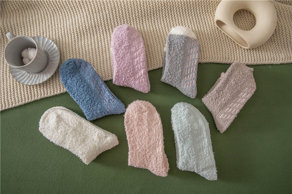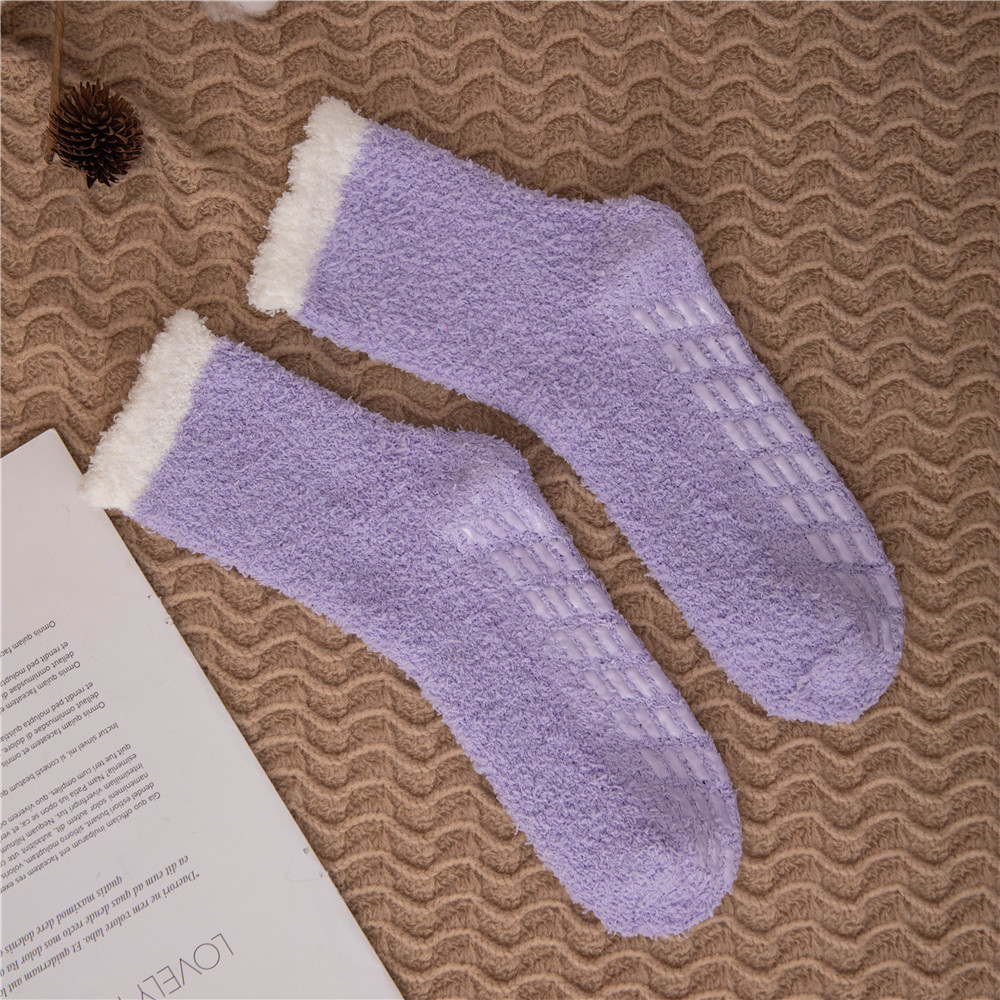 발바닥에 젤이 도포되어 미끄럼 방지, 보풀이 없는 산호 벨벳 양말 슬리퍼 양말, 여성용 겨울 중목 양말
