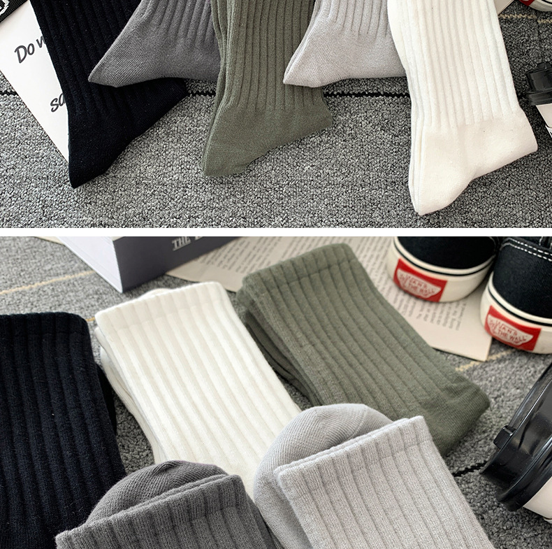 Zhuji 양말 남성용 중간 길이 양말 하이 웨이스트 단색 가을과 겨울 냄새 방지 두꺼운 모든 경기 스포츠 땀 흡수 커플 스타킹