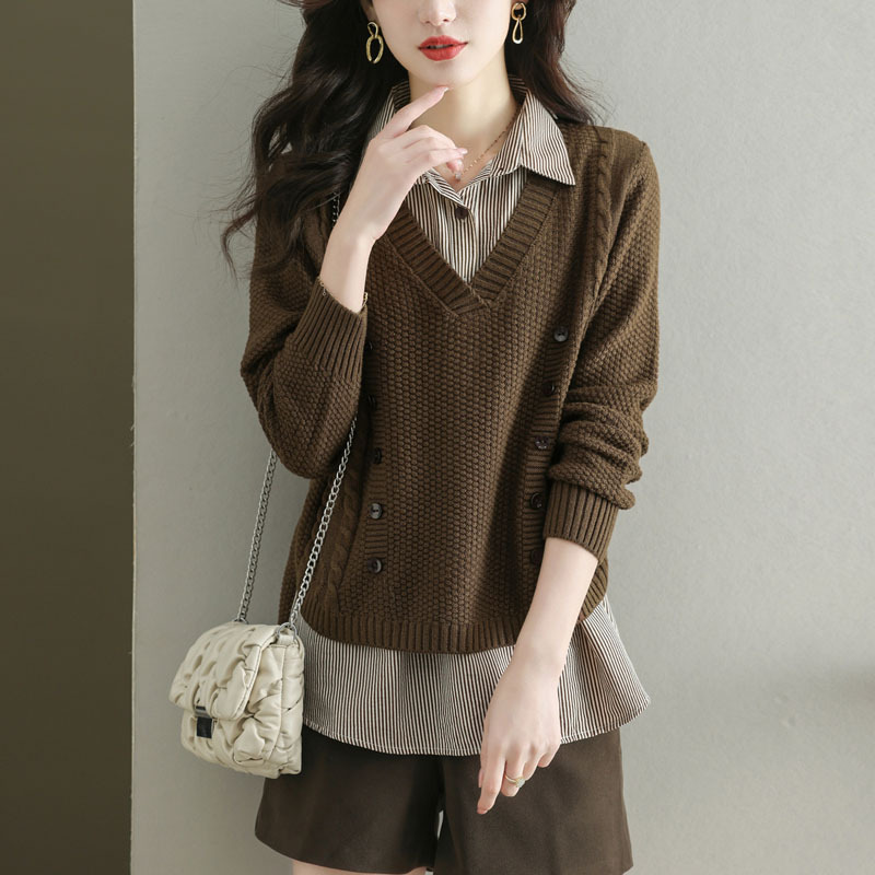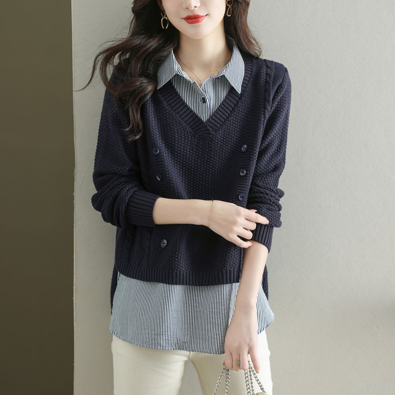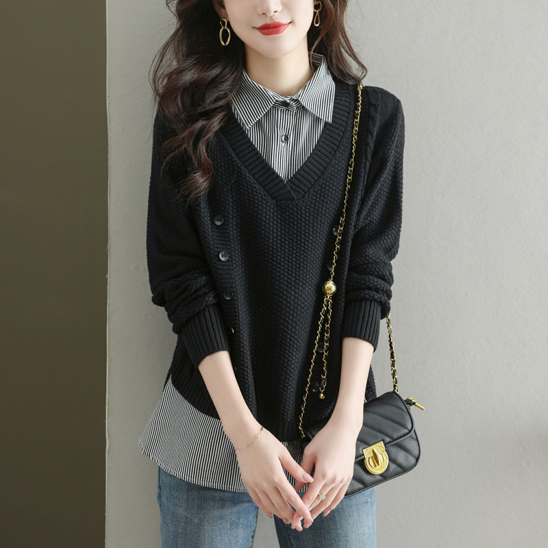 여성 셔츠 초가을 2025 새로운 가짜 투피스 스웨터 여성상의 가을 겨울 코트 서양식 셔츠스토어 가기