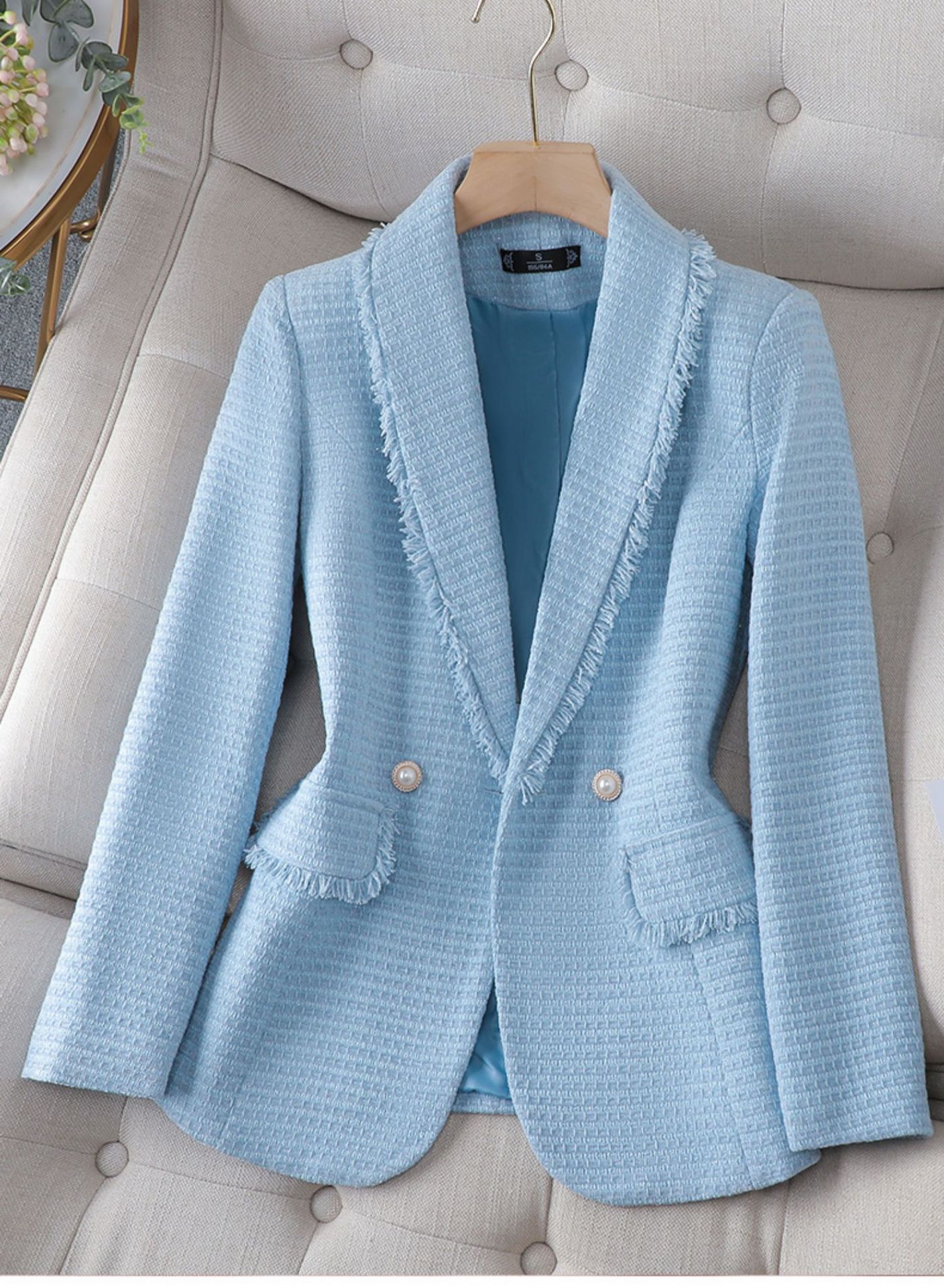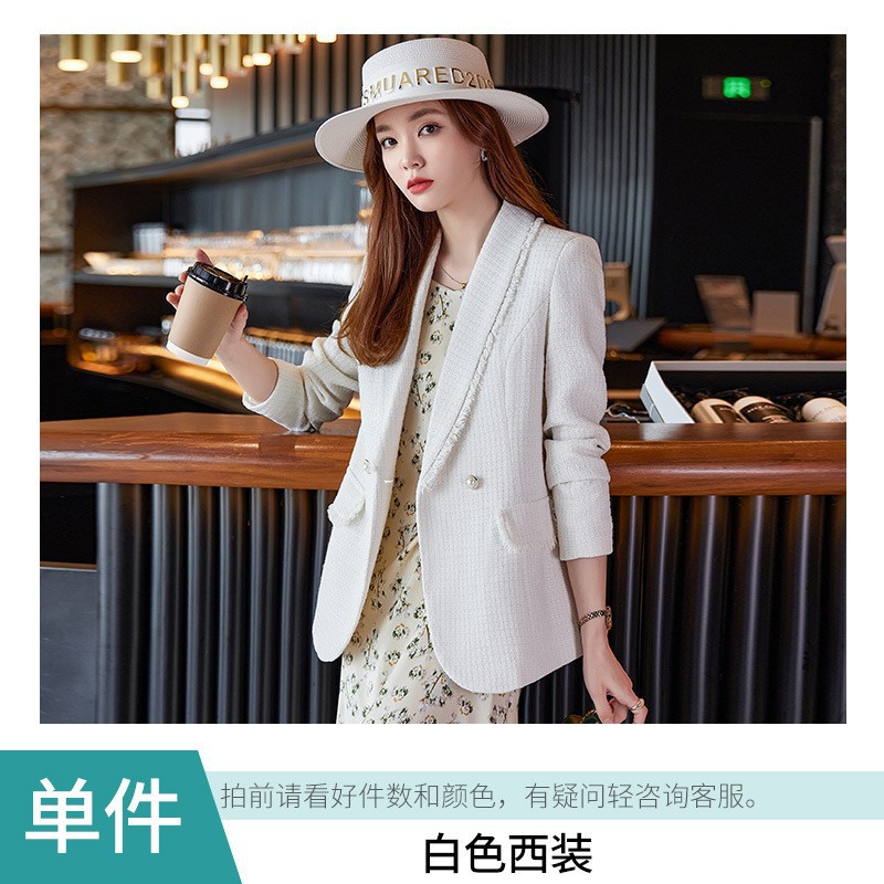 화이트 샤넬 스타일 세트 재킷 여자의 긴팔 2022 가을 겨울 캐주얼 모든 매치 슬리밍 유행 웨스턴 스타일 세트 탑스토어 가기