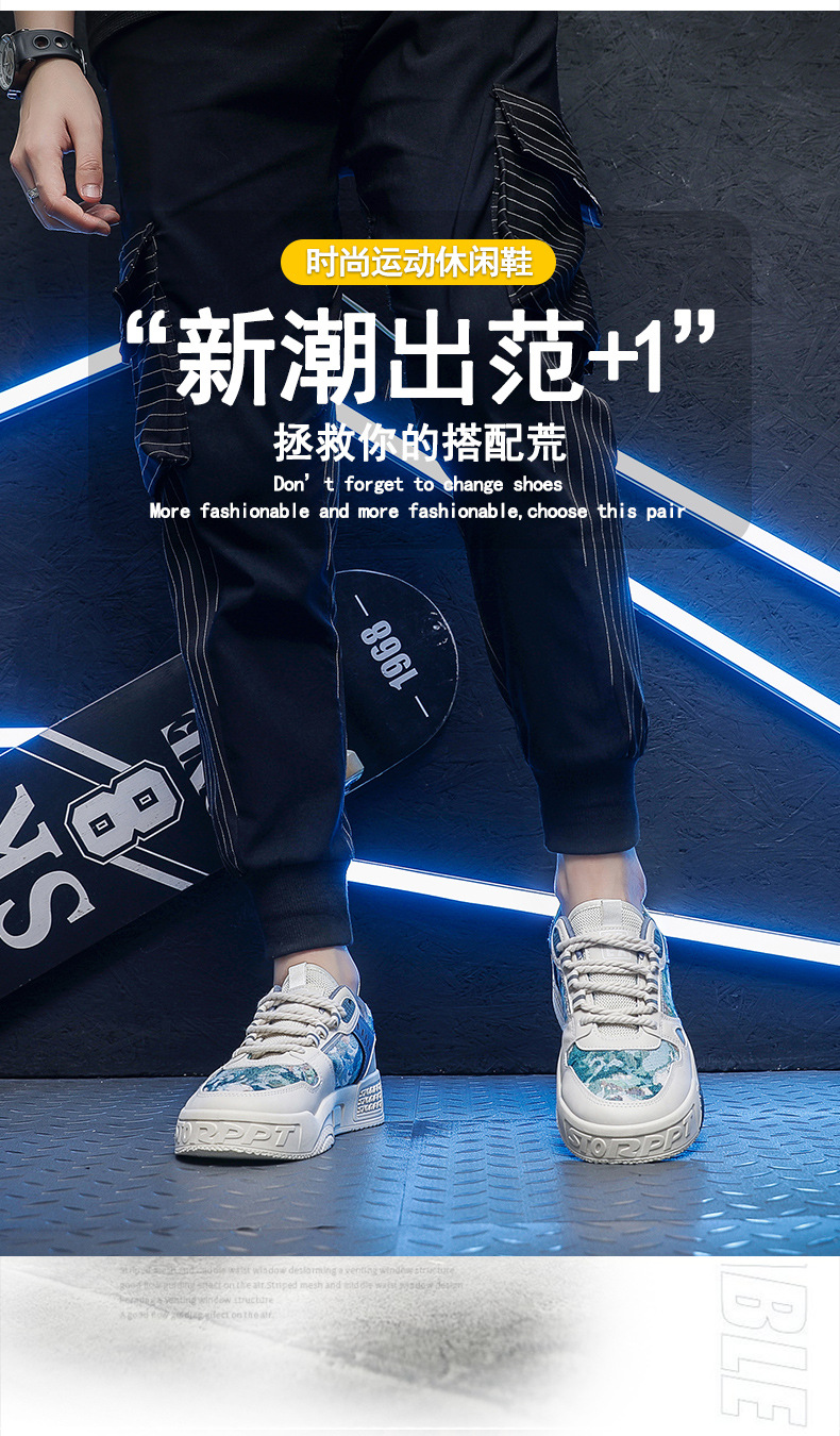 남자의 가을 새로운 한국 스타일 유행 신발 인터넷 연예인 인기 모든 경기 운동화 패션 캐주얼 스케이트 신발 미끄럼 방지 운동화