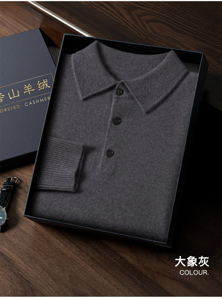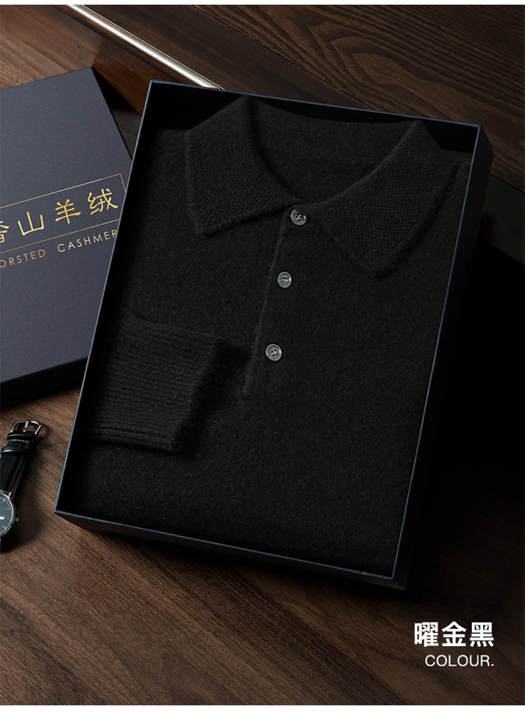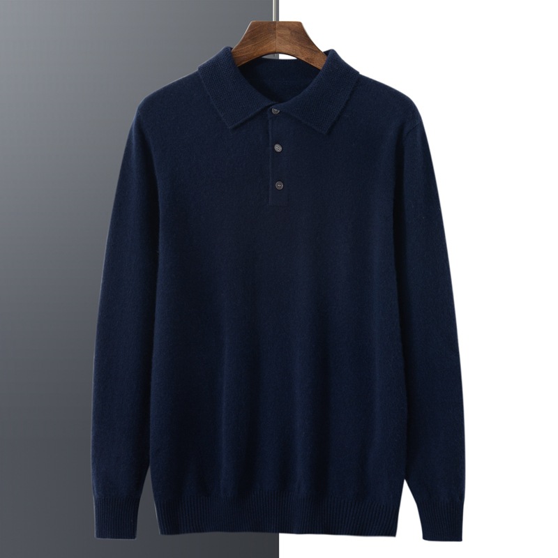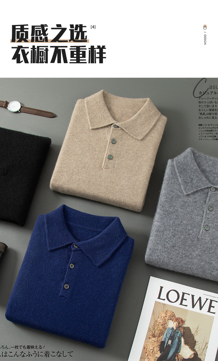 부드러운 캐시미어 2026 봄 신상 남성용 루즈핏 따뜻한 POIO 칼라 솔리드 컬러 풀오버 니트 스웨터스토어 가기