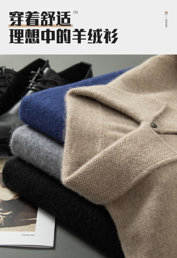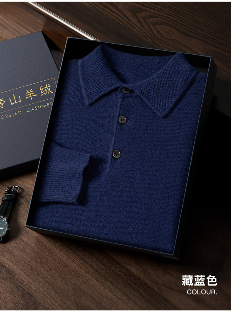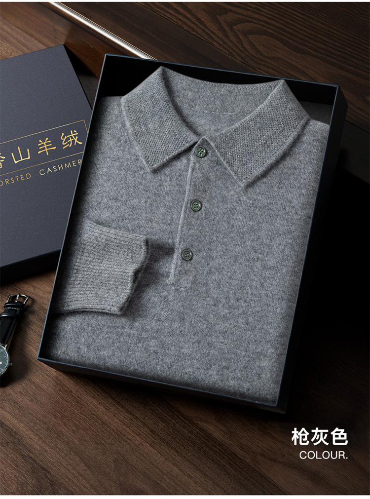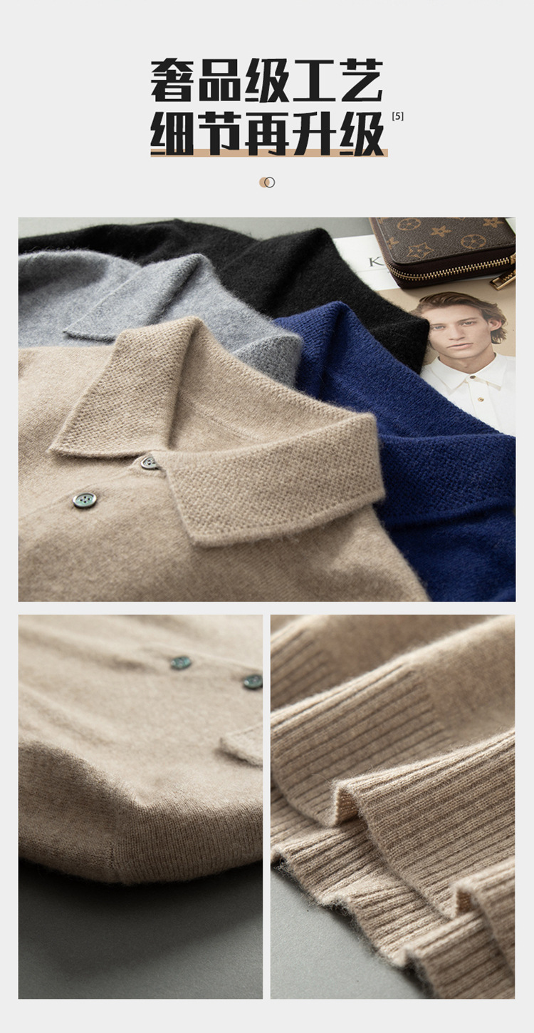 부드러운 캐시미어 2026 봄 신상 남성용 루즈핏 따뜻한 POIO 칼라 솔리드 컬러 풀오버 니트 스웨터스토어 가기