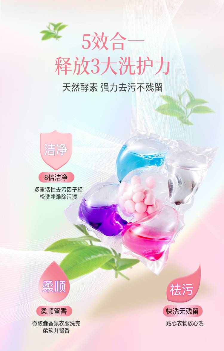 Greijing 부드러운 깨끗한 5 공동 세탁 젤 구슬 멀티 효과 1 대 1 오래 지속되는 향수 세탁 공 공장 도매