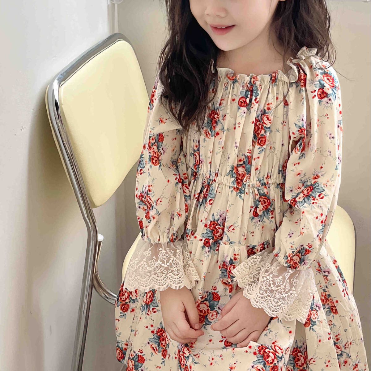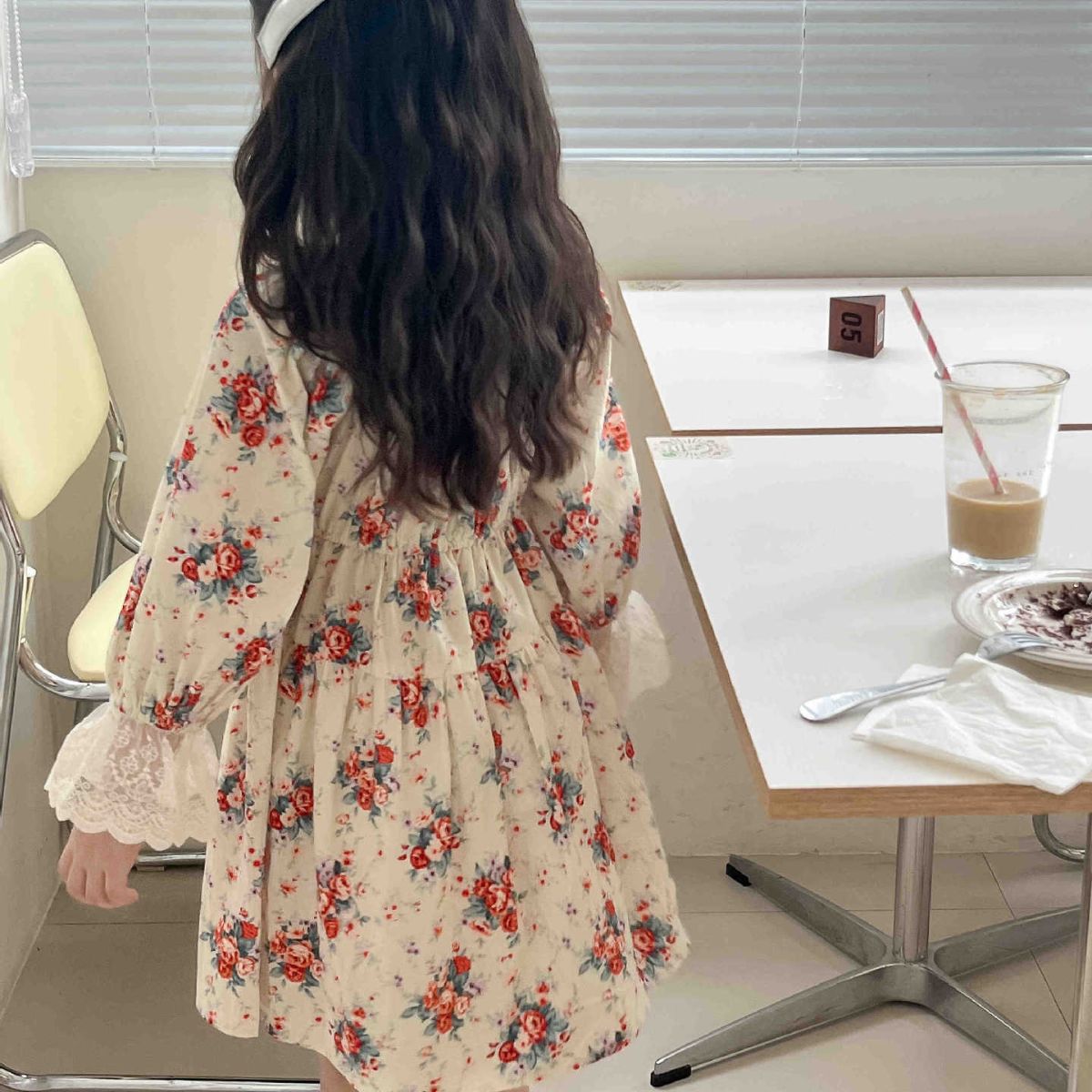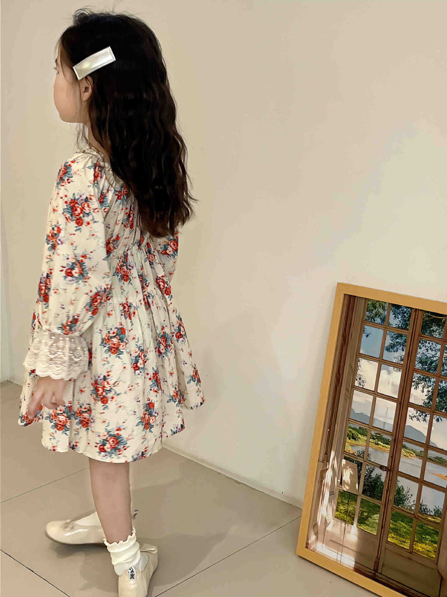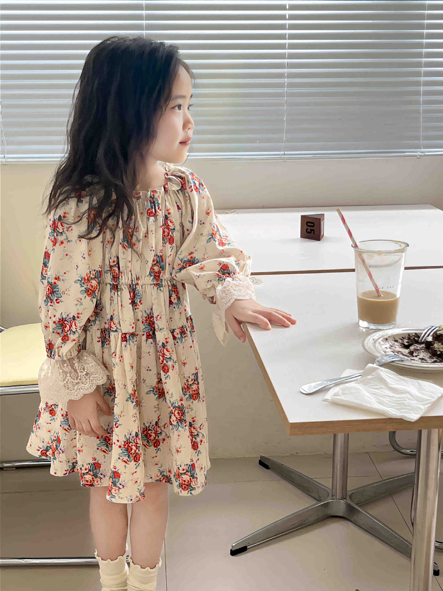 2023 어린이 프랑스 스타일 꽃 레이스 긴 원피스 가을 세련된 새로운 소녀 코트 스타일 벨벳 원피스스토어 가기