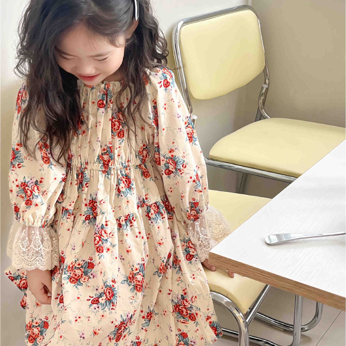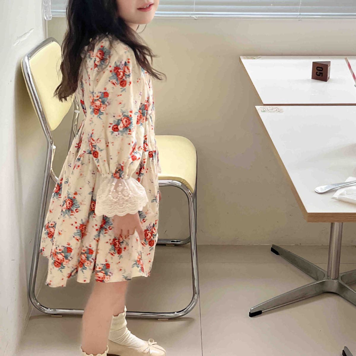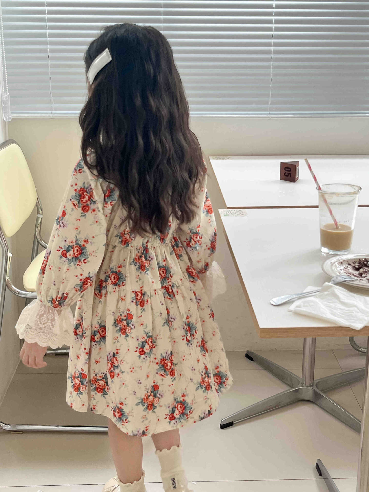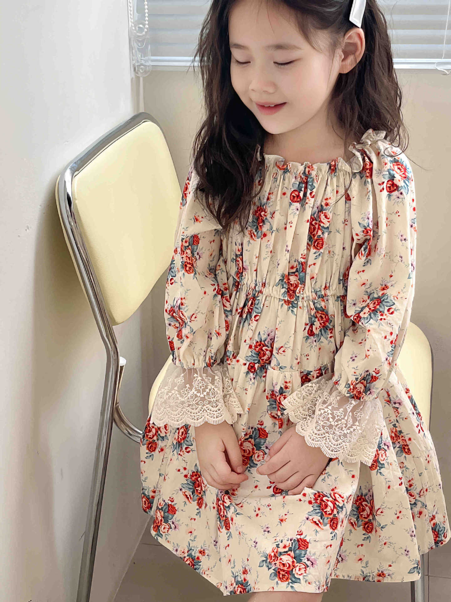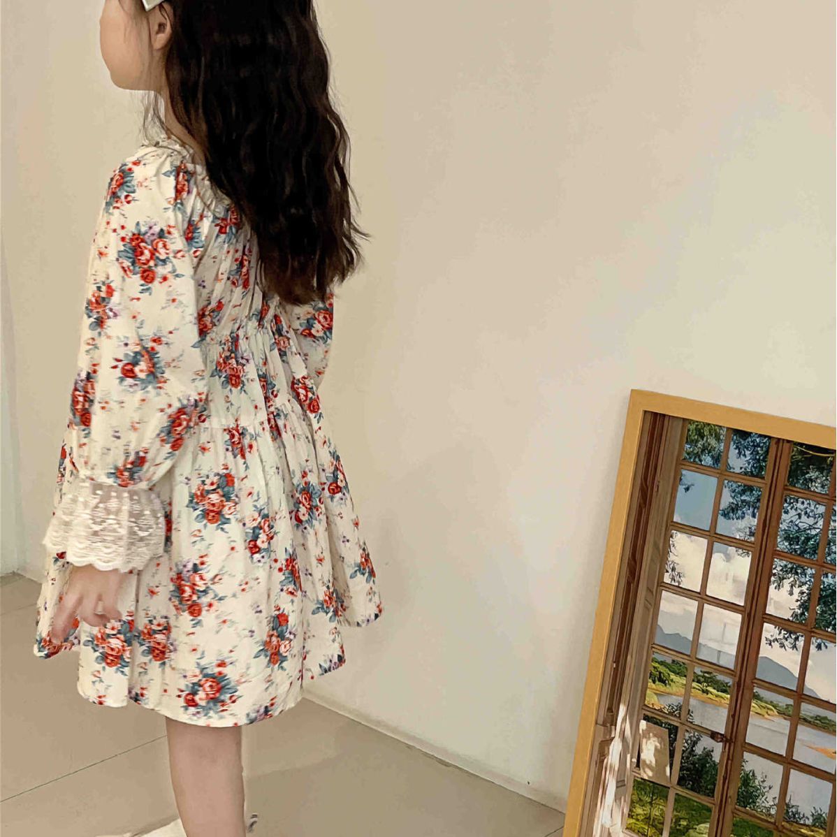 2023 어린이 프랑스 스타일 꽃 레이스 긴 원피스 가을 세련된 새로운 소녀 코트 스타일 벨벳 원피스스토어 가기