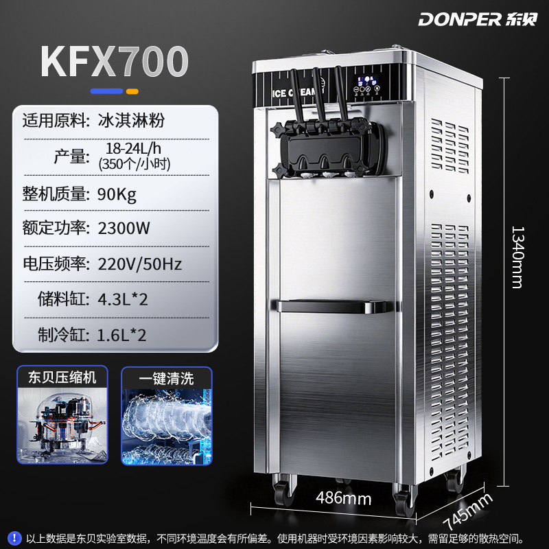 • KFX700 수직 3헤드 + 1.25HP Dongbei 압축기 + 자동 청소 기능 + 자동 생산 기능 + 아이스크림 파우더