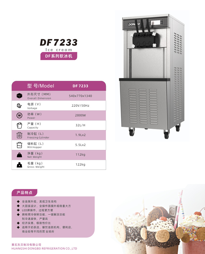 • 7일 무세척 기능 + 원클릭 해동 + 전자동 세척 기능 + 강철 주조 교반기 + 우유 슬러리 및 분말 + 1.5HP Dongbei 압축기
