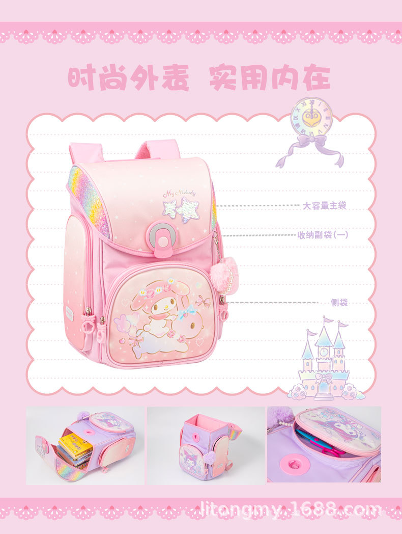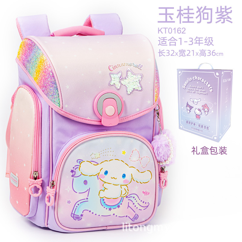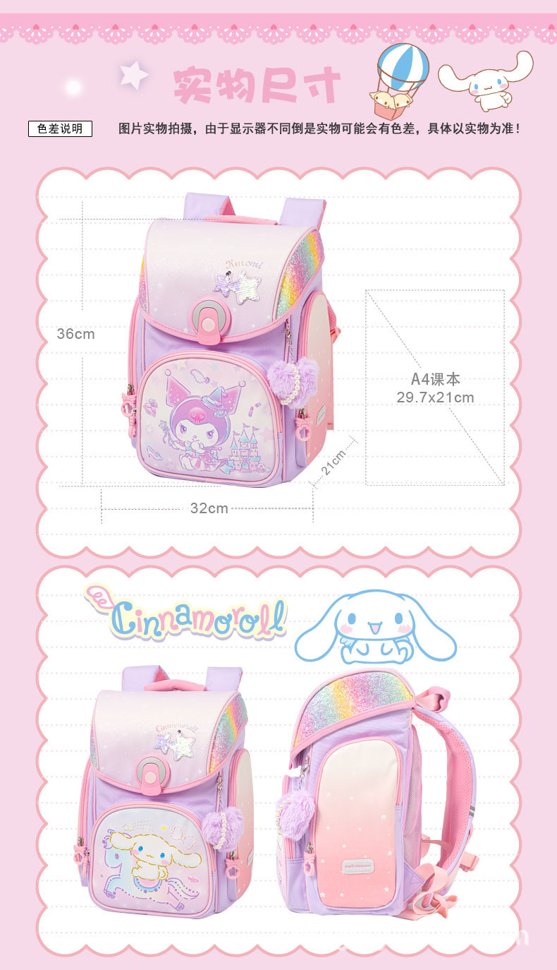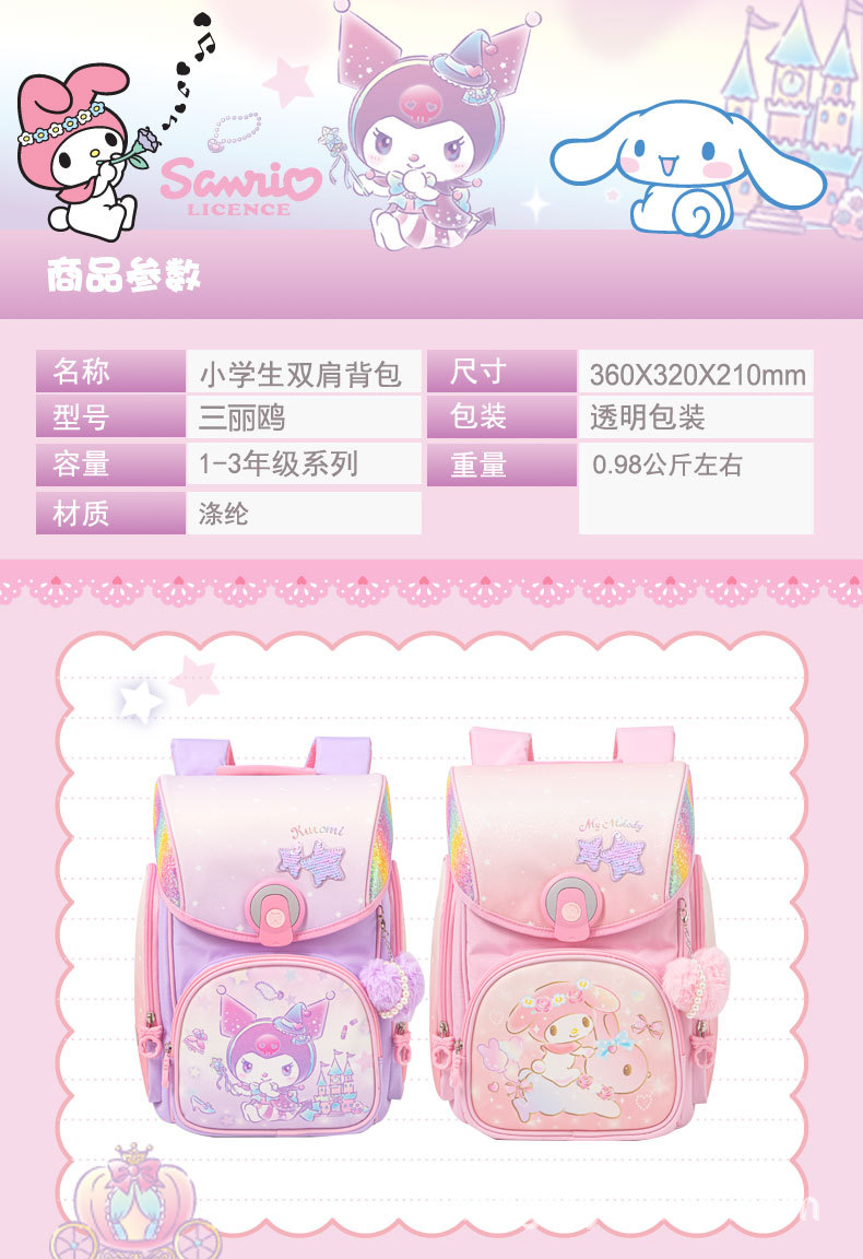 초등학생을위한 Kulomi 책가방 여자 산리오 멜로디 배낭 어린이 소녀 계피 개 배낭 선물 상자스토어 가기