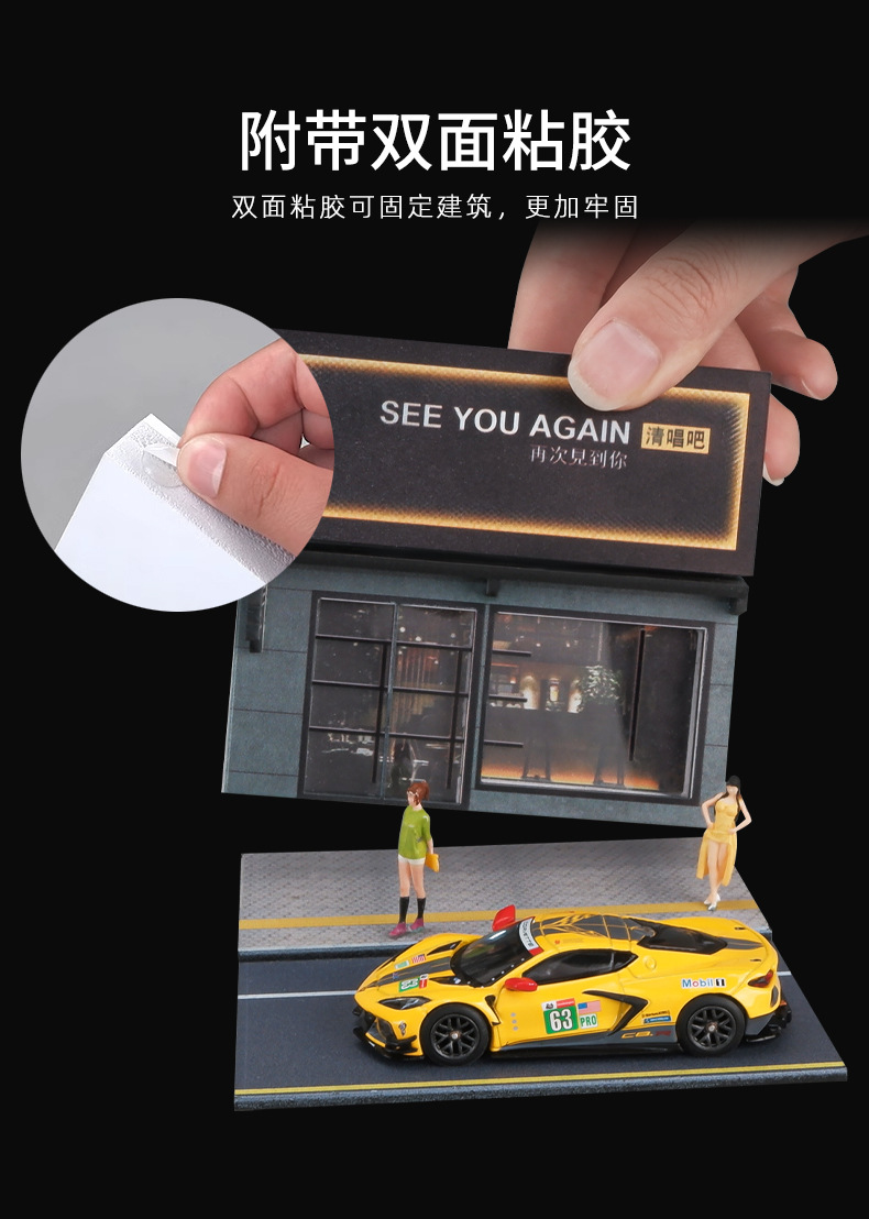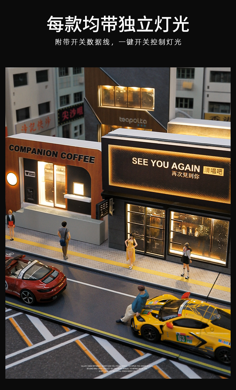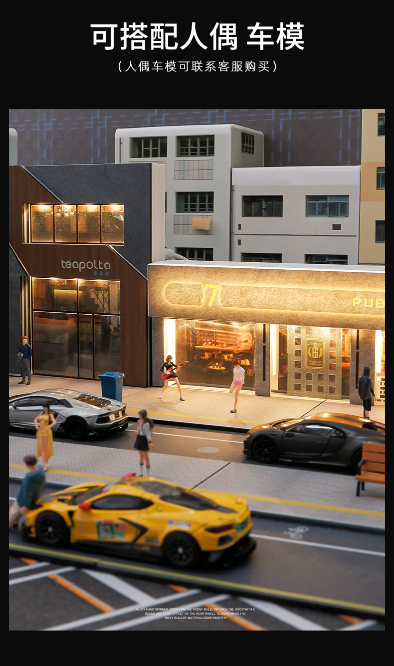 1:64 미니어처 장면 카페 바 조명 스트리트 뷰 하우스 건물 모델 사진 소품 장난감 장식품