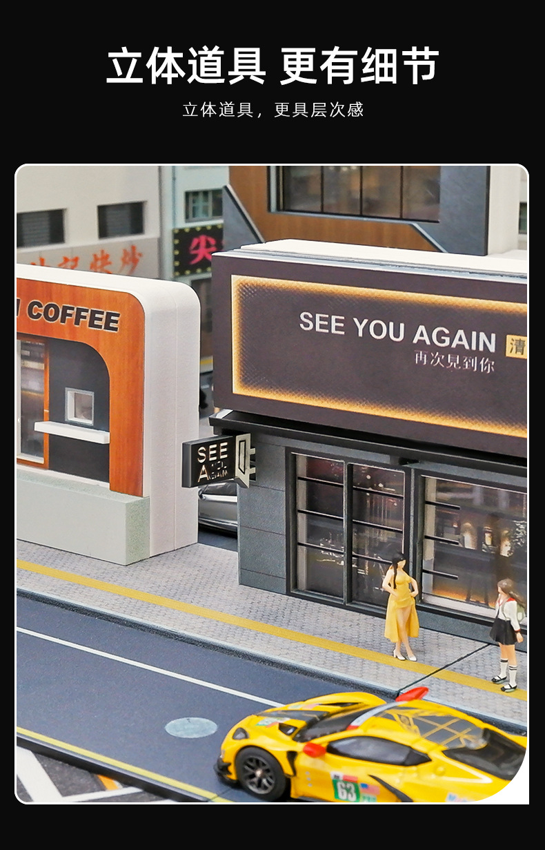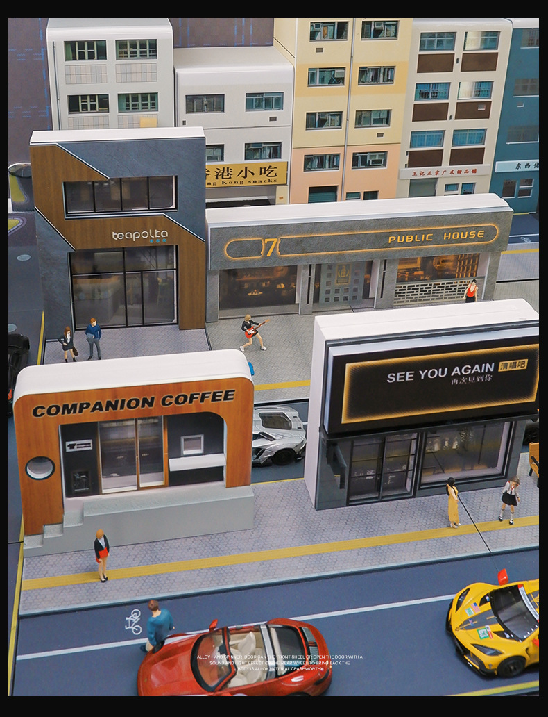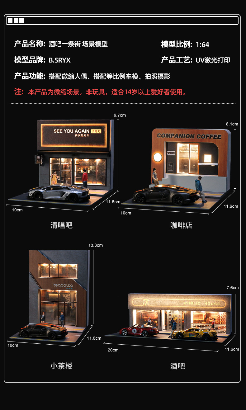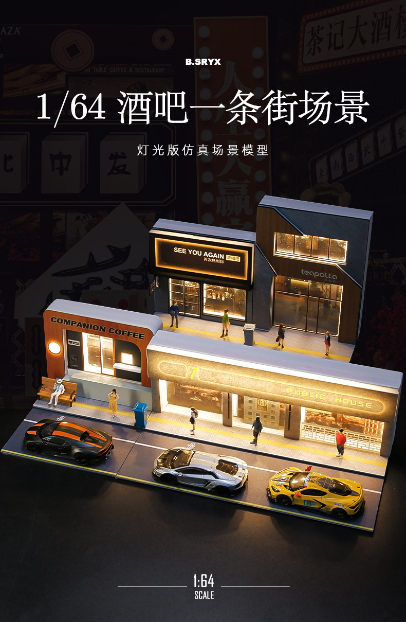 1:64 미니어처 장면 카페 바 조명 스트리트 뷰 하우스 건물 모델 사진 소품 장난감 장식품스토어 가기