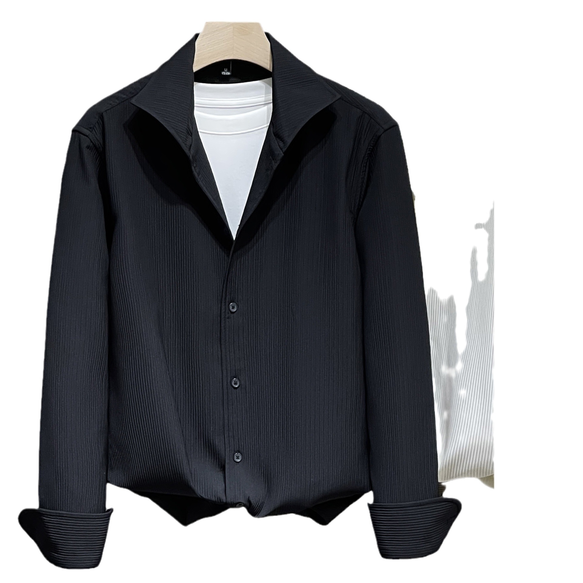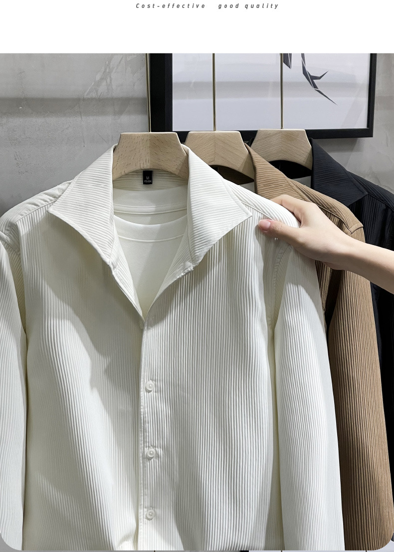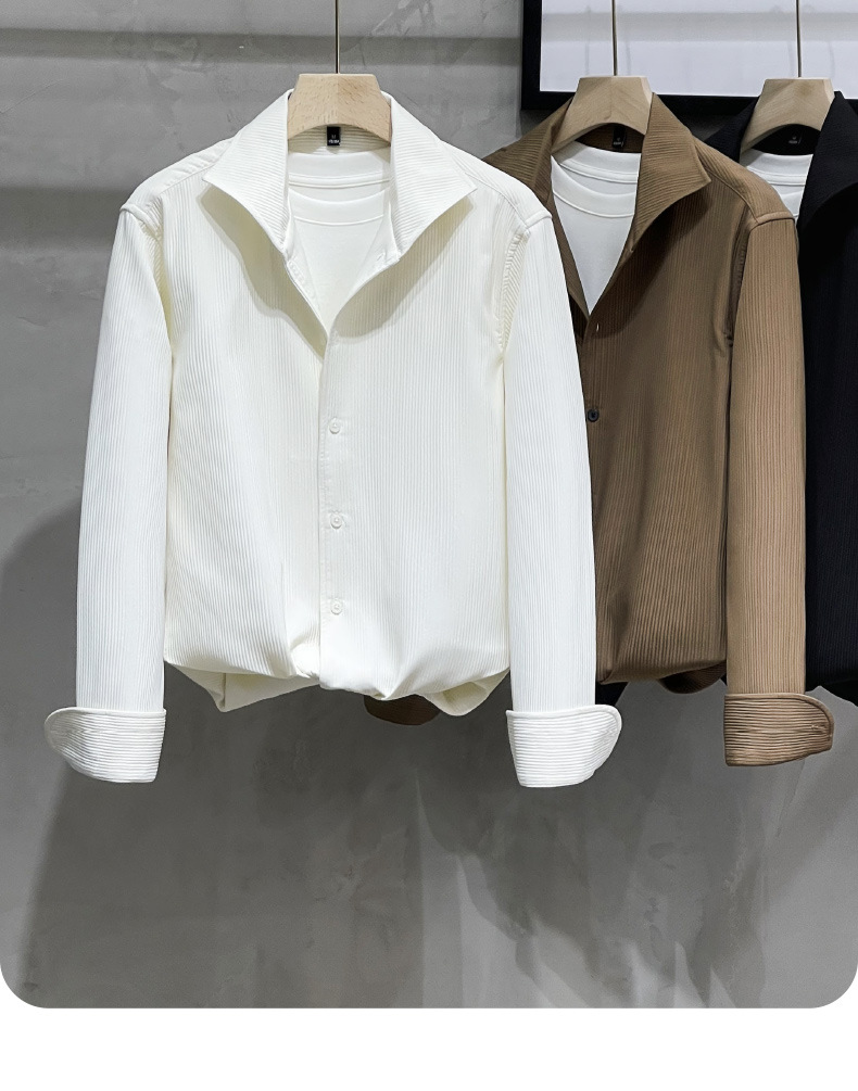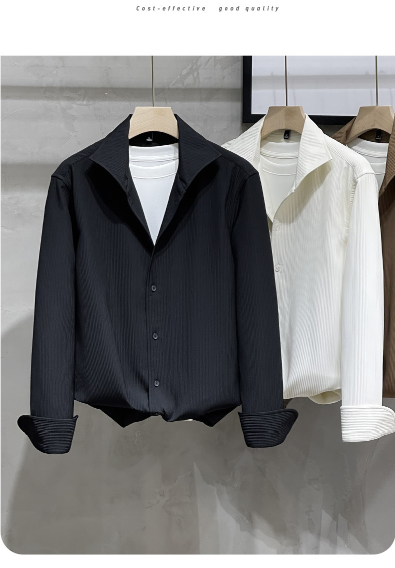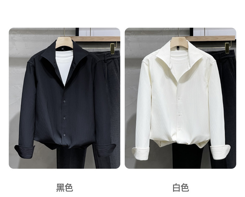 프랑스 스타일 윈저 칼라 화이트 셔츠 남성용 긴팔 고급 질감 아이스 실크 봄과 가을 원피스 한국식 가벼운 성숙한 셔츠