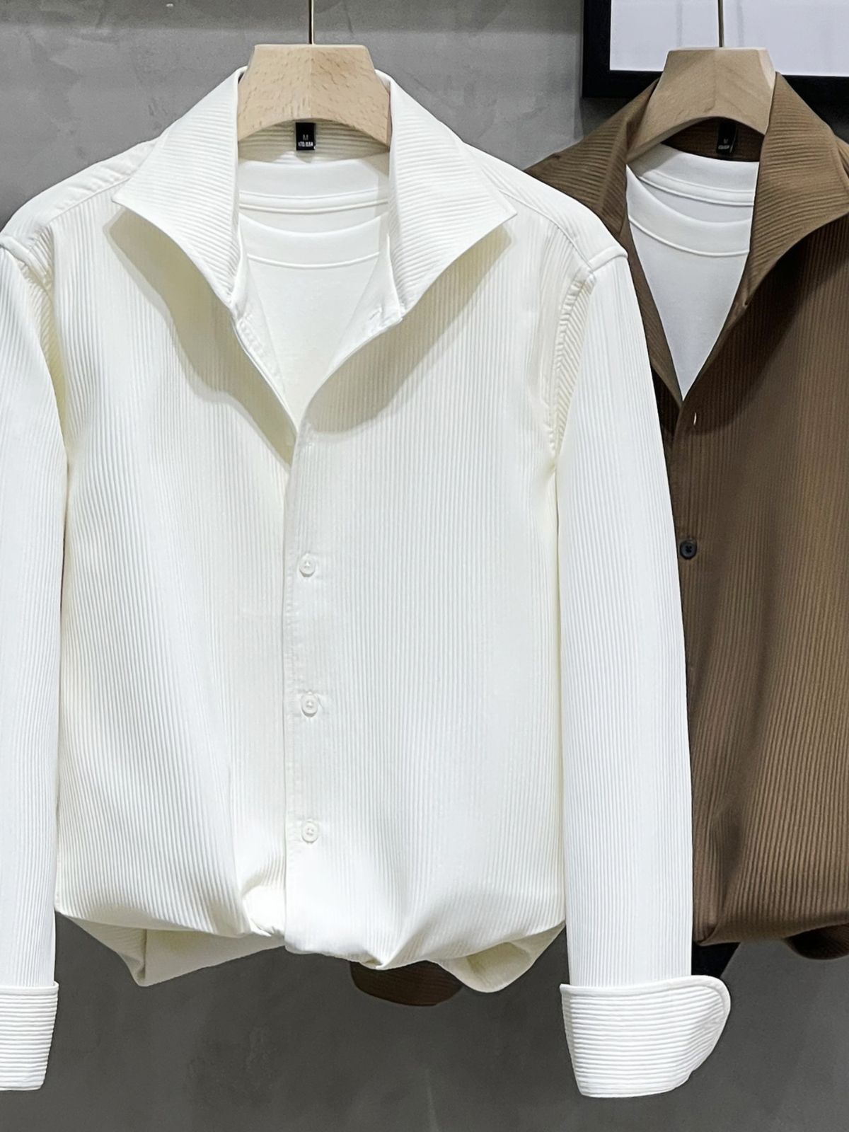 프랑스 스타일 윈저 칼라 화이트 셔츠 남성용 긴팔 고급 질감 아이스 실크 봄과 가을 원피스 한국식 가벼운 성숙한 셔츠스토어 가기