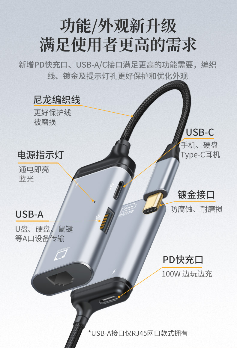 타입-C to DP 어댑터 케이블 VGA/HDMI/RJ45 네트워크 카드 HD 변환기 노트북 휴대폰 충전 및 화면 전송스토어 가기