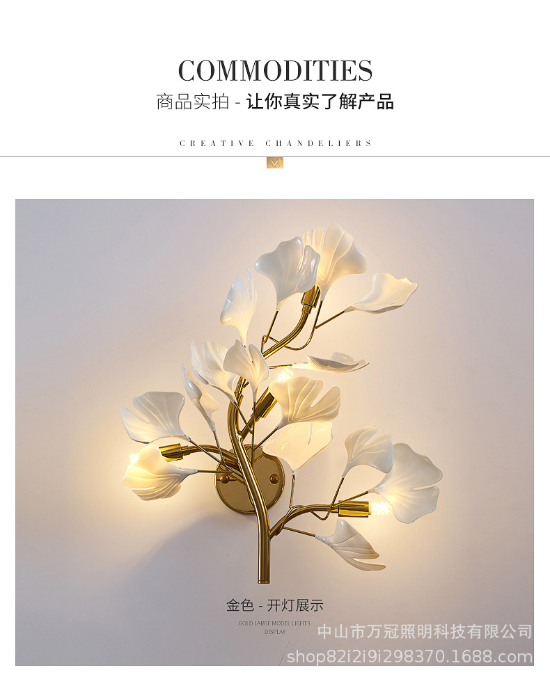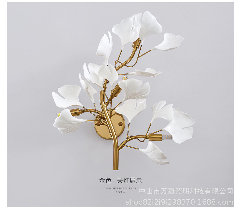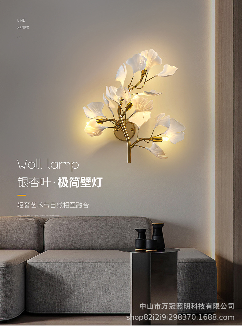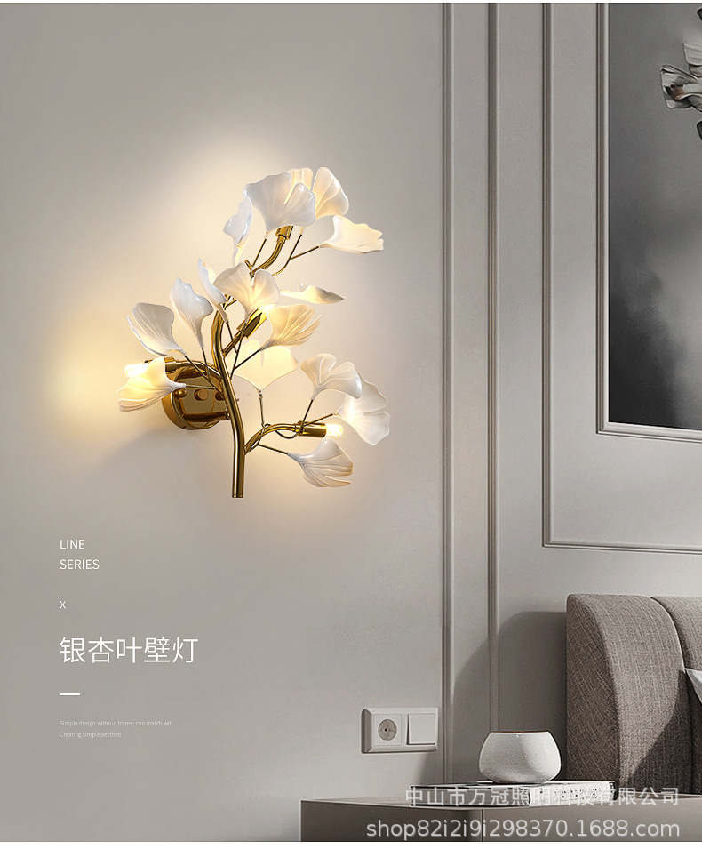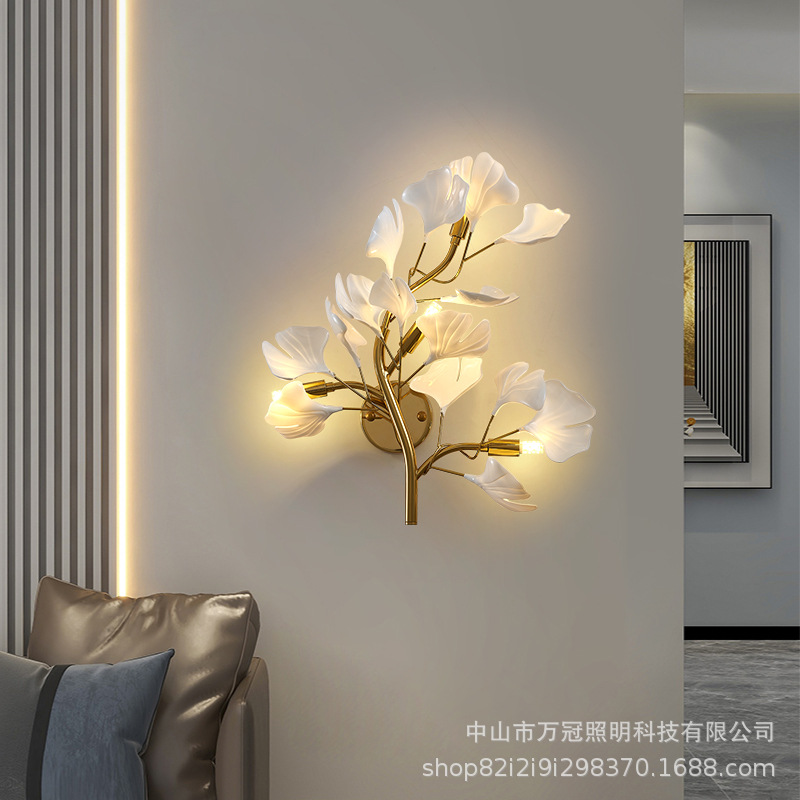 은행 나무 잎 벽 램프 빛 럭셔리 거실 소파 배경 벽 램프 창조적 인 복도 간단한 북유럽 침실 침대 옆 램프스토어 가기