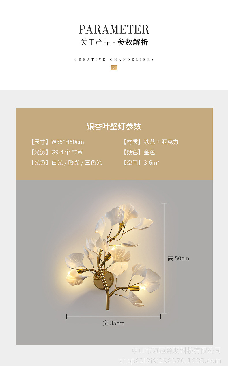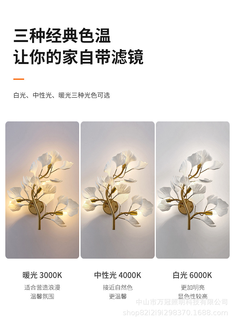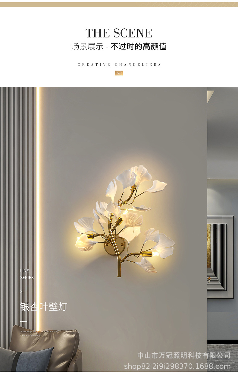 은행 나무 잎 벽 램프 빛 럭셔리 거실 소파 배경 벽 램프 창조적 인 복도 간단한 북유럽 침실 침대 옆 램프스토어 가기