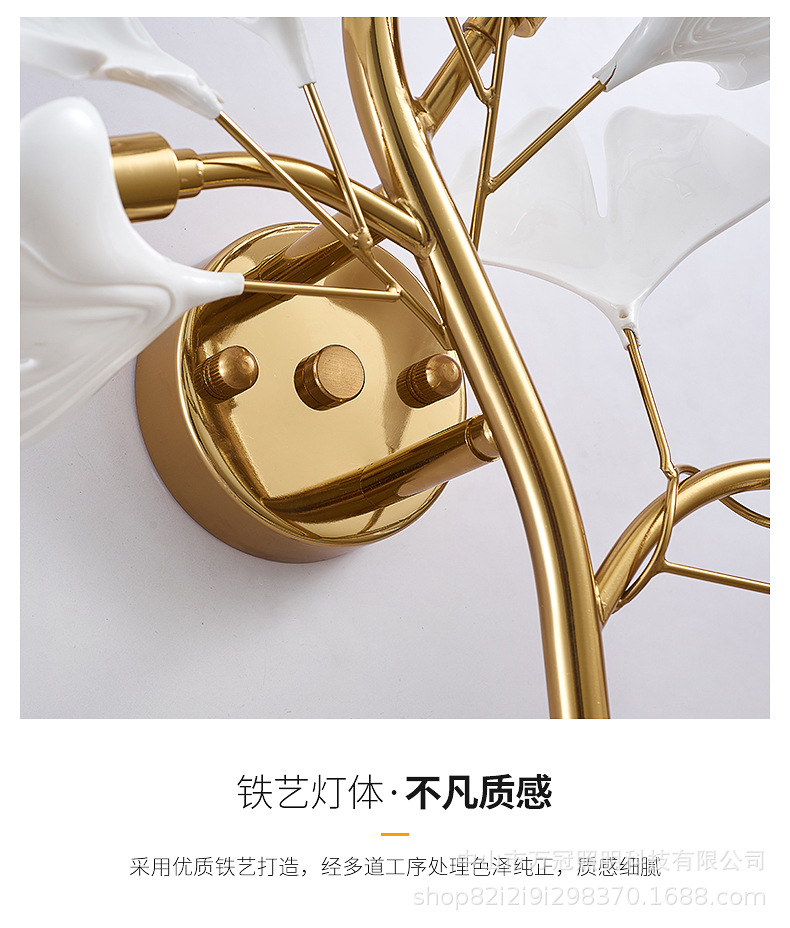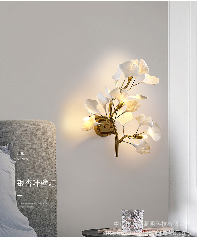 은행 나무 잎 벽 램프 빛 럭셔리 거실 소파 배경 벽 램프 창조적 인 복도 간단한 북유럽 침실 침대 옆 램프