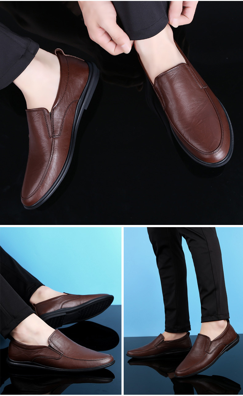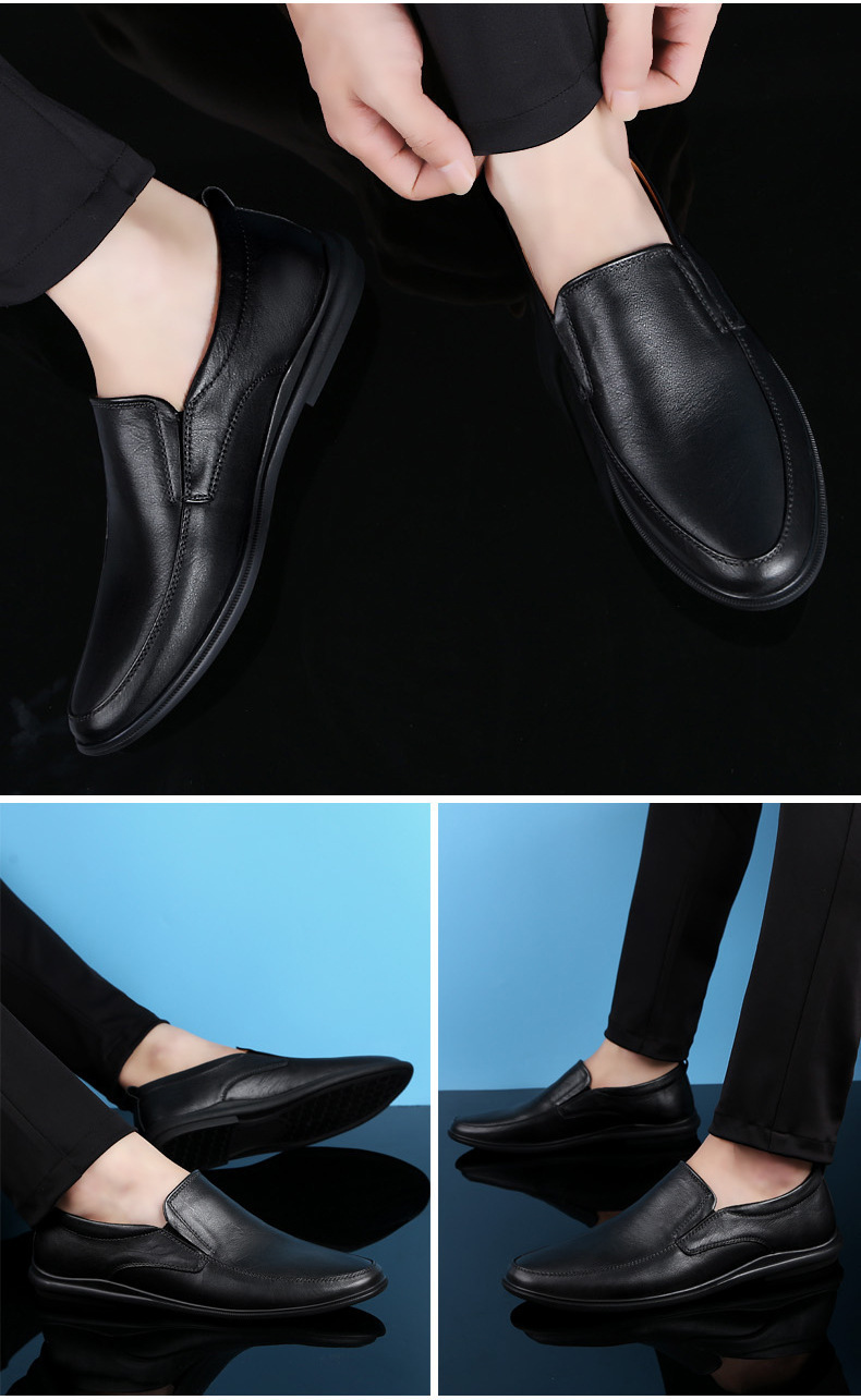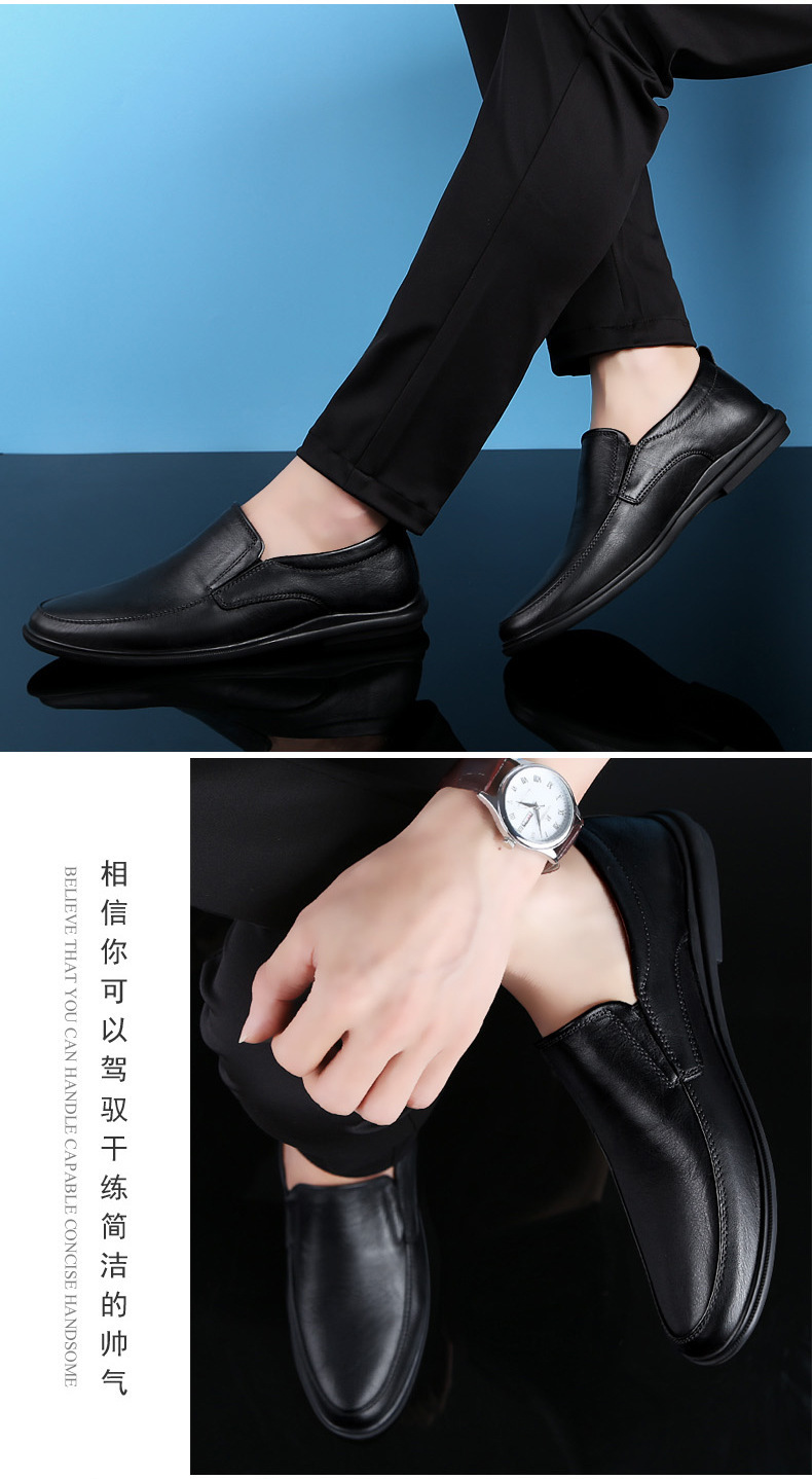 남성 신발 편안한 통기성 비즈니스 캐주얼 가죽 신발 남성용 부드러운 바닥 부드러운 표면 슬립온 신발 중년 아빠 남성용 작업 신발