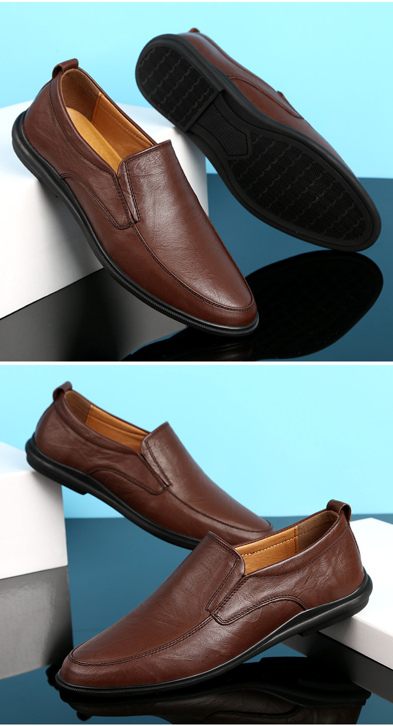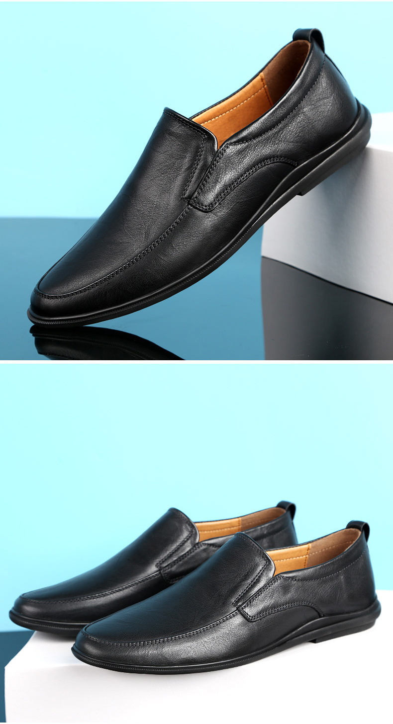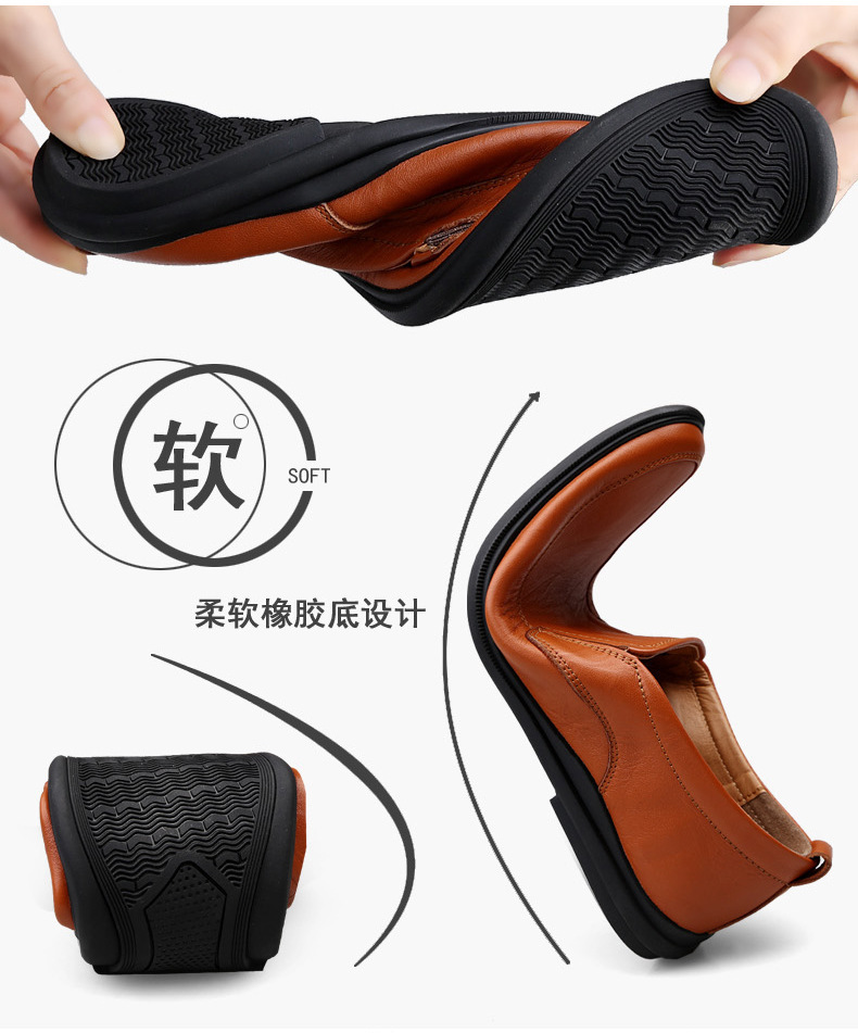 남성 신발 편안한 통기성 비즈니스 캐주얼 가죽 신발 남성용 부드러운 바닥 부드러운 표면 슬립온 신발 중년 아빠 남성용 작업 신발