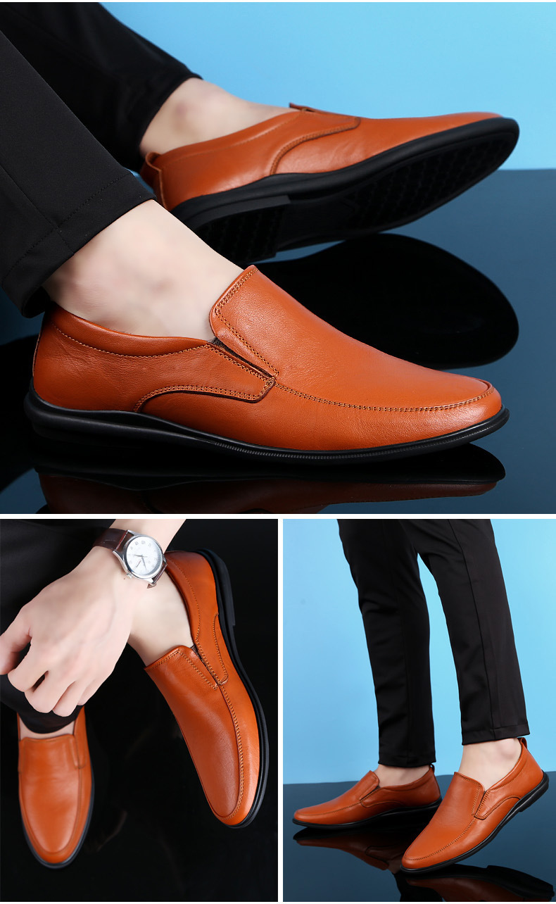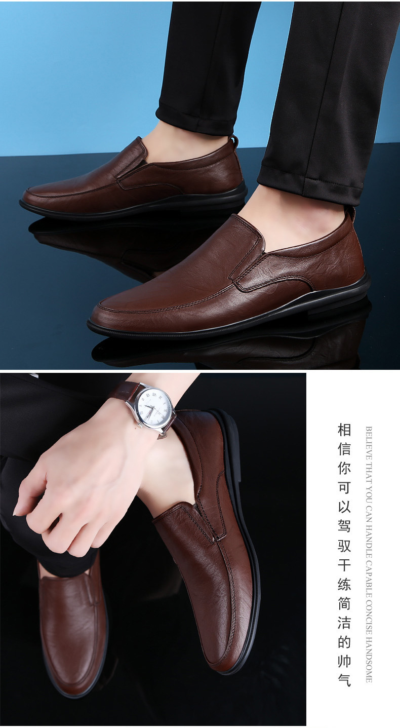 남성 신발 편안한 통기성 비즈니스 캐주얼 가죽 신발 남성용 부드러운 바닥 부드러운 표면 슬립온 신발 중년 아빠 남성용 작업 신발스토어 가기