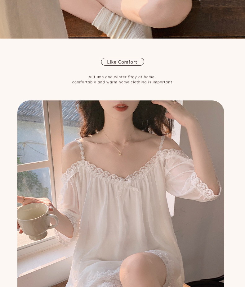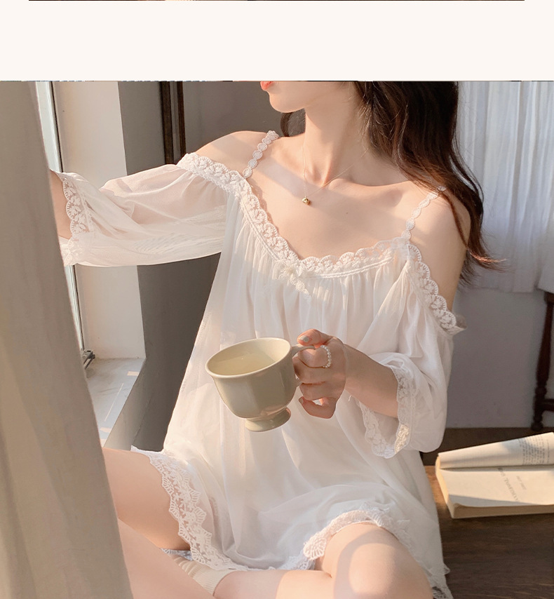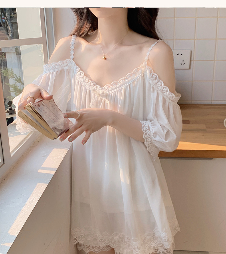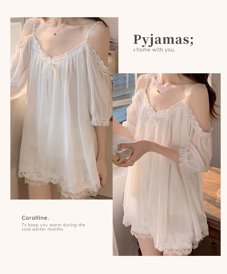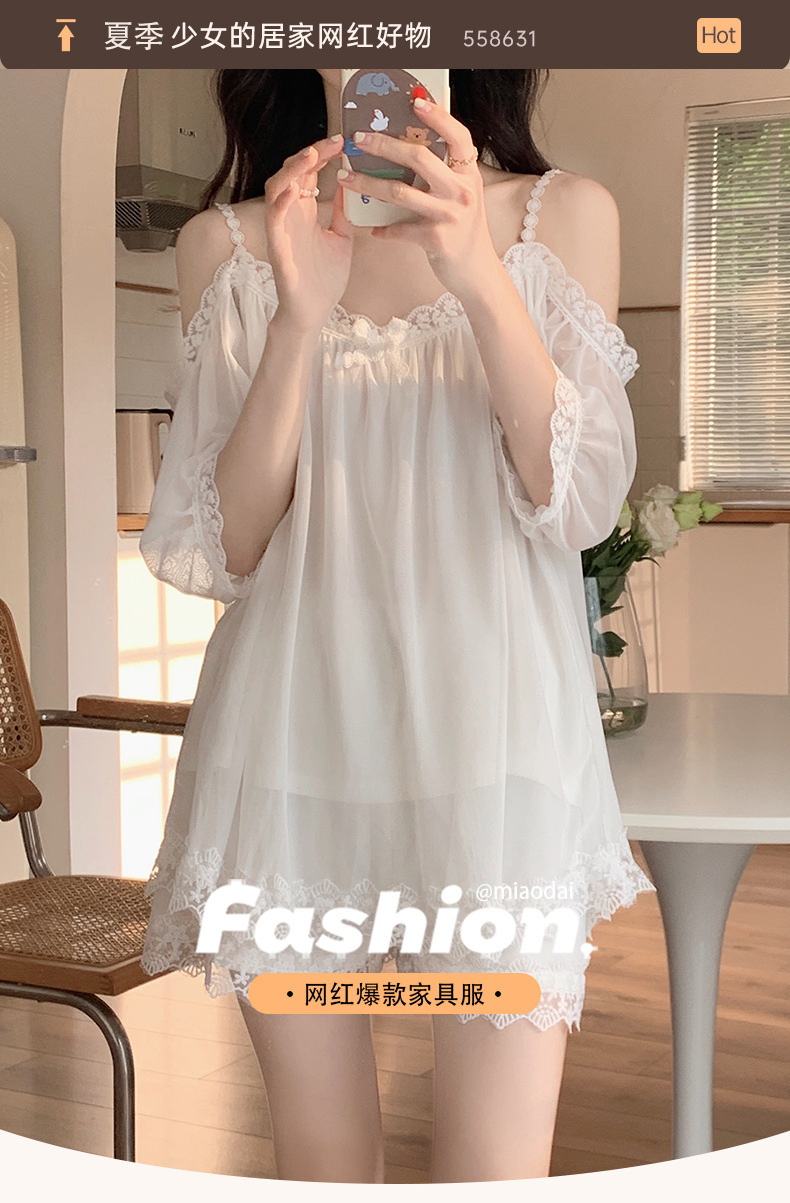 이윤 얕은 다이 여자의 파자마 바지 여름 슬링 어깨 섹시한 레이스 공주 순수 달콤한 얇은 가정 옷 세트스토어 가기