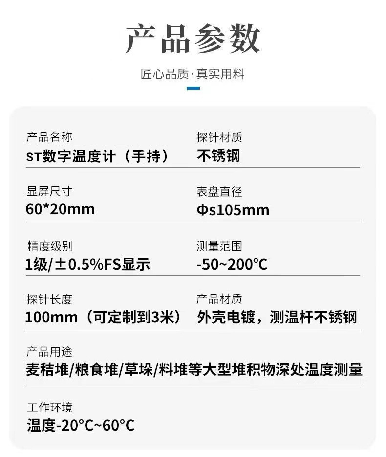 무료 배송 삽입형 곡물 온도계, 곡물 및 풀 더미 온도 측정기, 휴대용 스테인리스 프로브 디지털 온도계