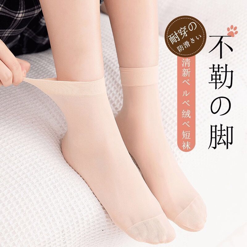 봄과 여름 새로운 스틸 스타킹 내마모성 안티 후크 실크 여성용 짧은 스타킹 달 보이지 않는 살색 벨벳 머서화 양말