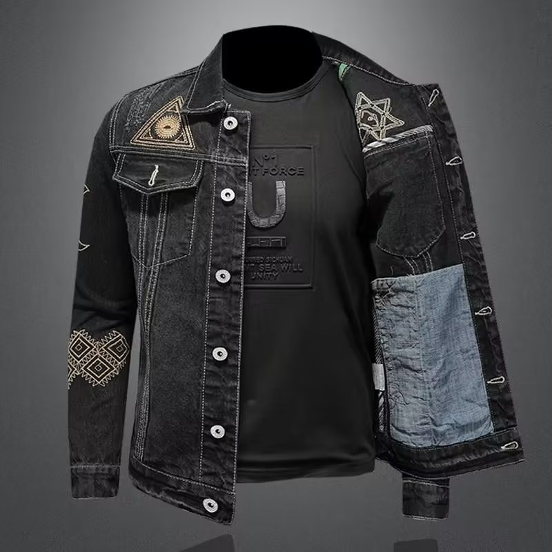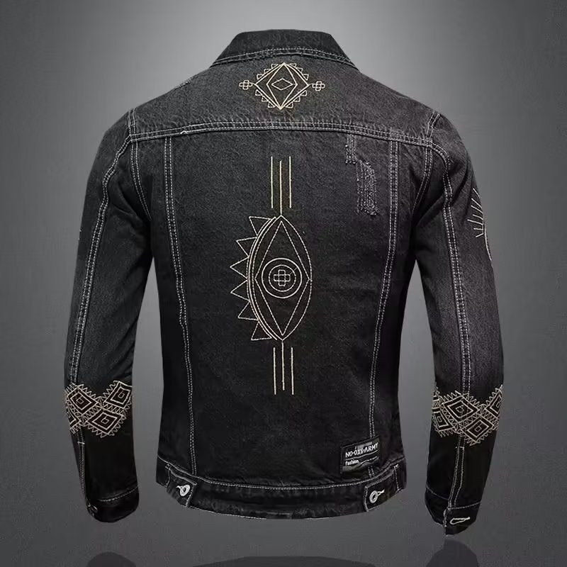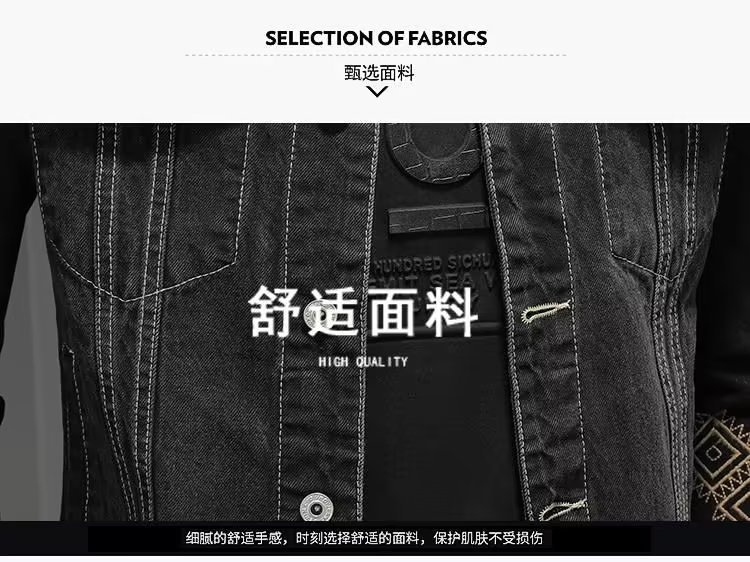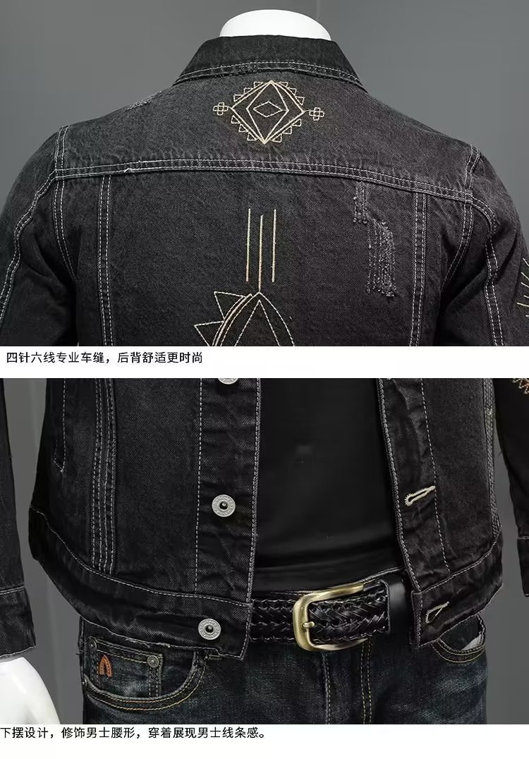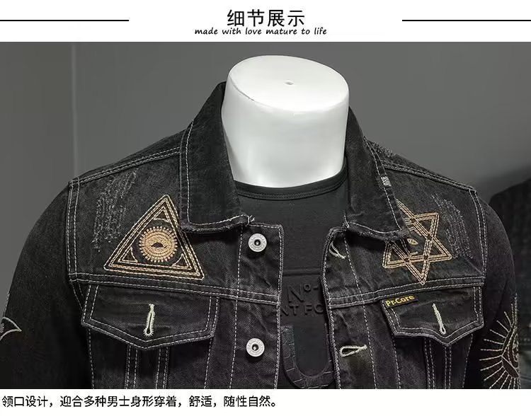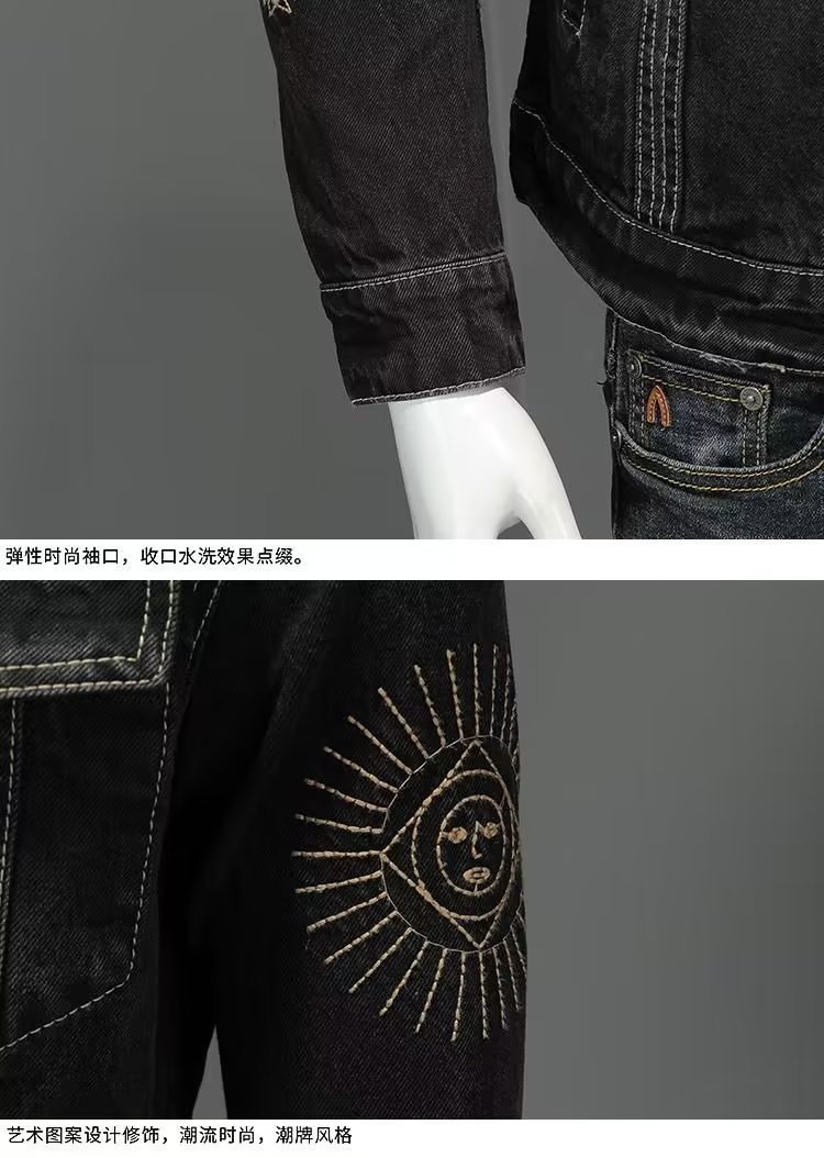 유럽과 미국 스타일 유행 수 놓은 옷깃 데님 재킷 남자의 가을과 겨울 새로운 복고풍 거리 캐주얼 느슨한 작업 재킷