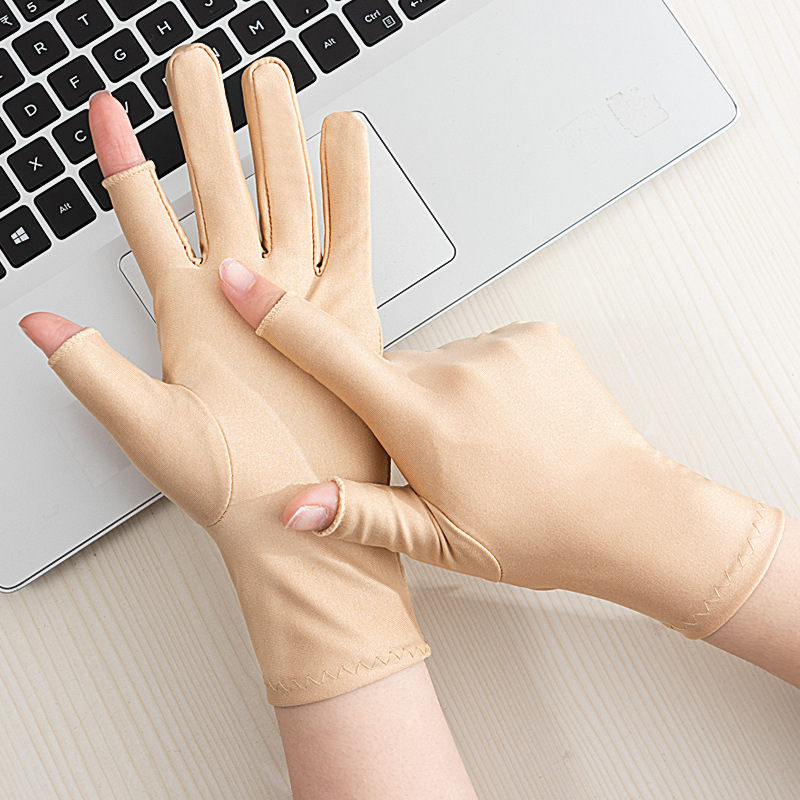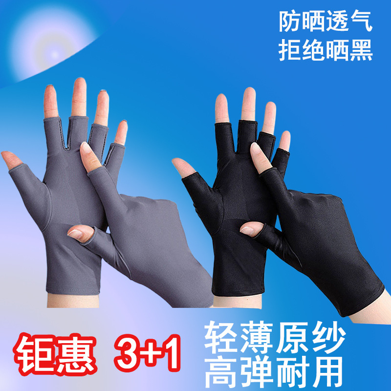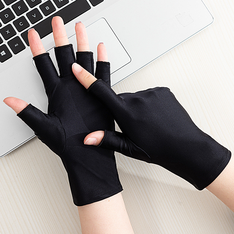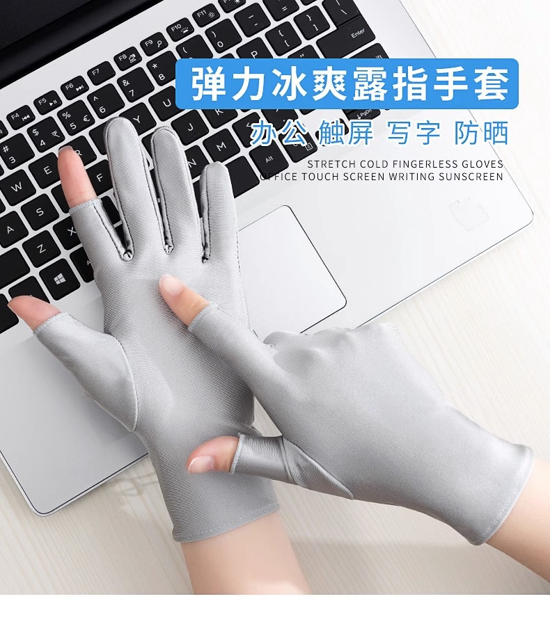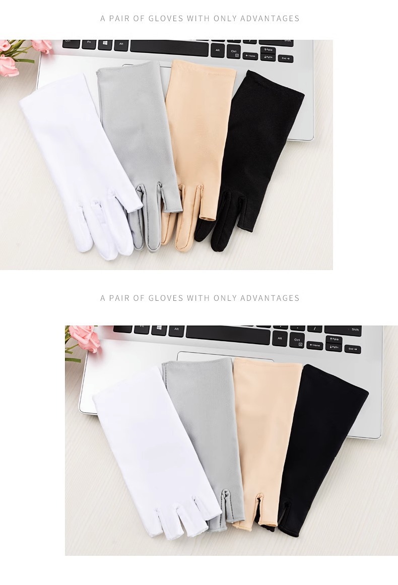 여름 반 손가락 간단한 패션 탄성 터치 스크린 태양 보호 미끄럼 방지 실크 얇은 장갑 사무실 운전 사이클링 장갑
