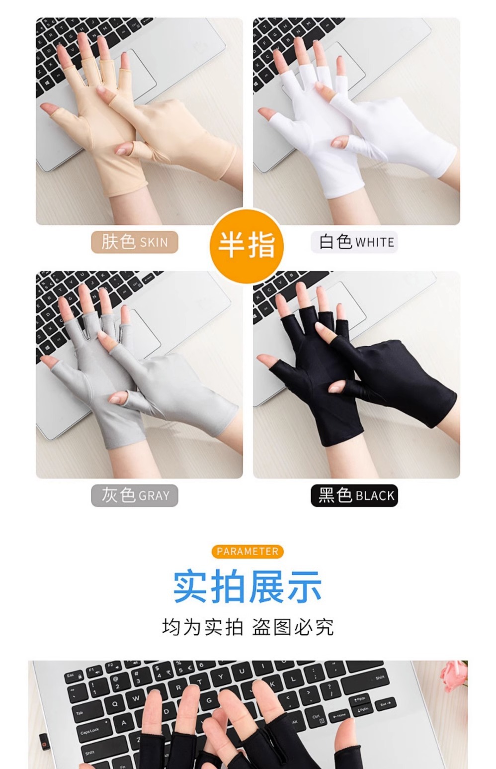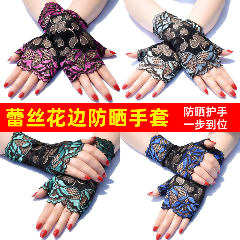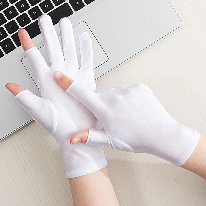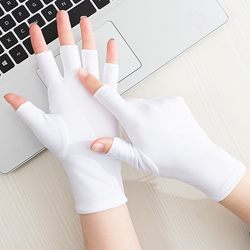 여름 반 손가락 간단한 패션 탄성 터치 스크린 태양 보호 미끄럼 방지 실크 얇은 장갑 사무실 운전 사이클링 장갑