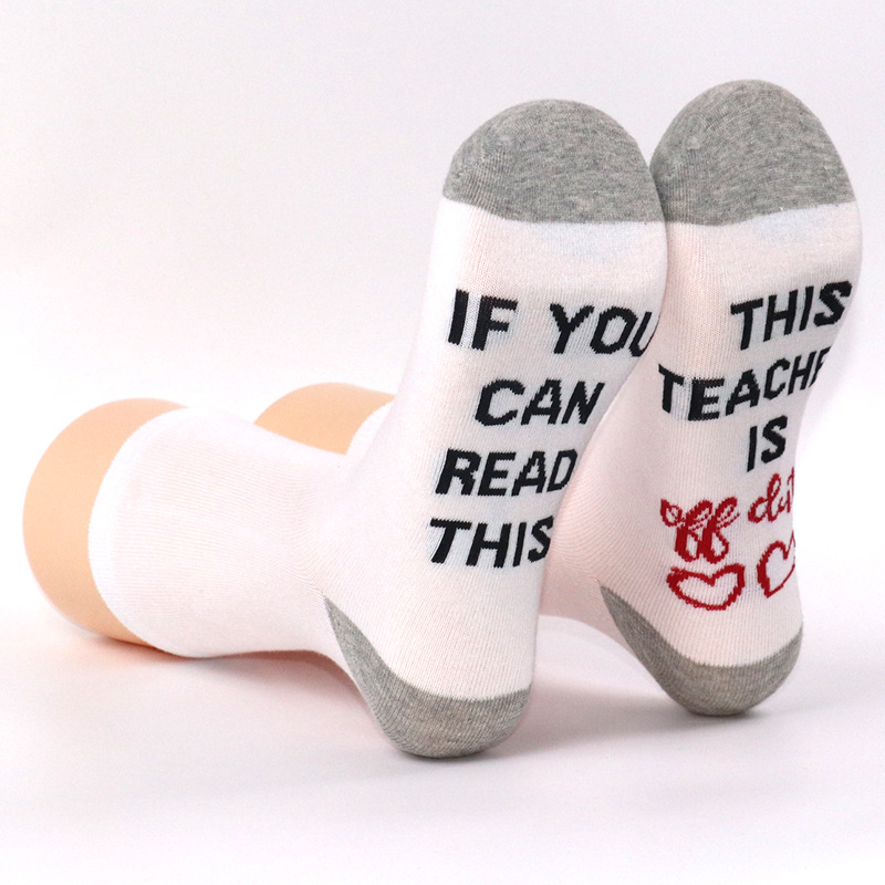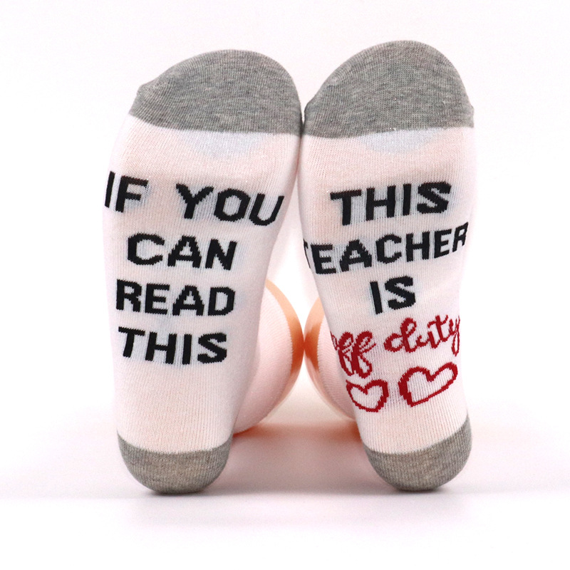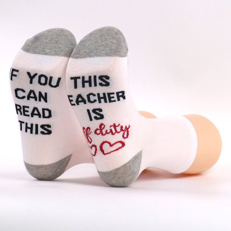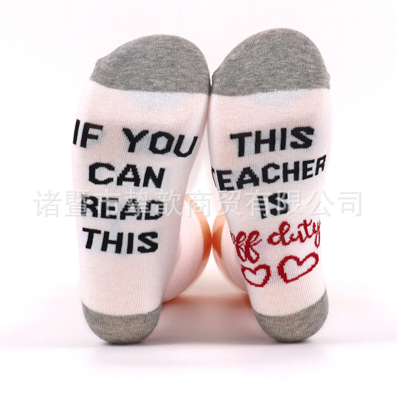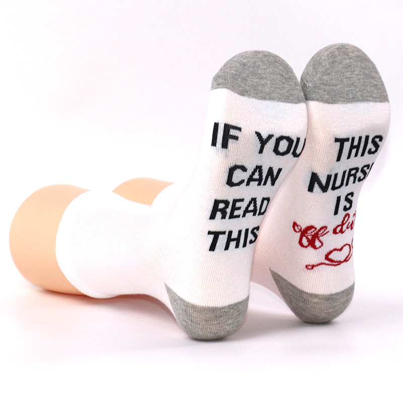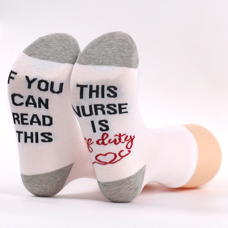 유럽과 미국에서 인기 있는 간호사와 교사용 순면 중목 양말, 발바닥에 레터링 자수가 있는 캐주얼 스포츠 양말, 항균 기능