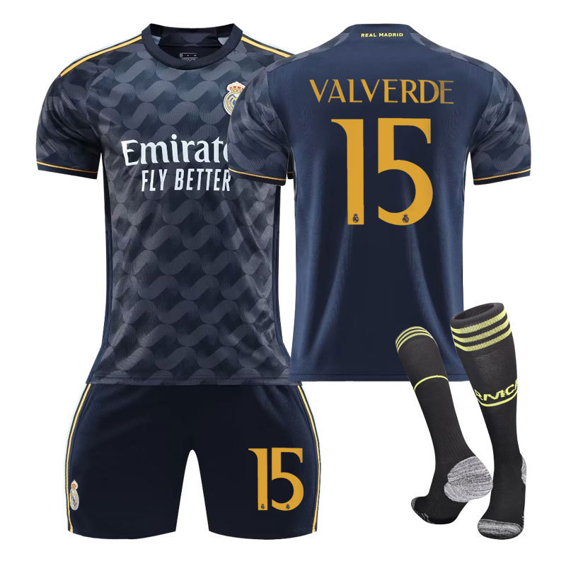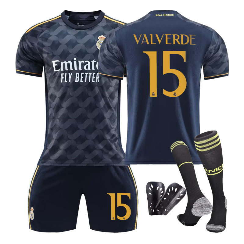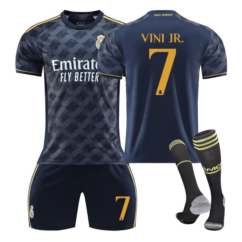 2324新款皇马客场大人儿童款学生训练服套装球衣运动服男女足球服