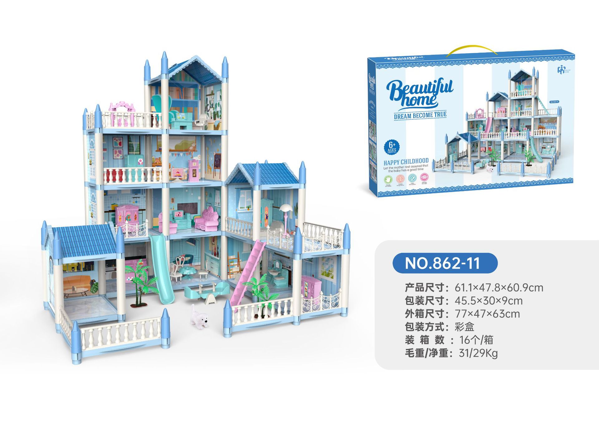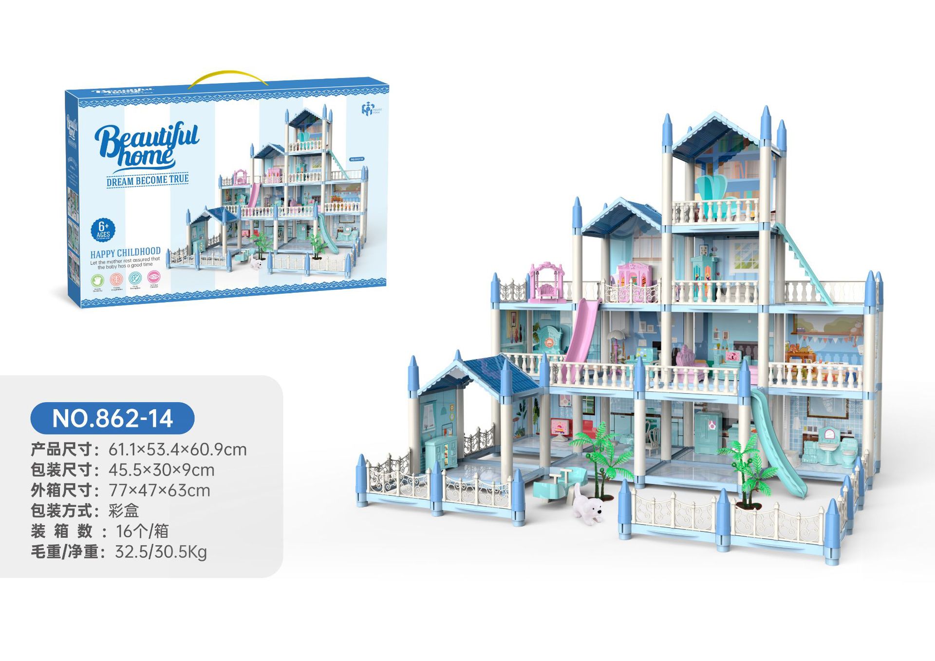 • (A862-14) 파란색 방 14개 테라스 2개(아이 4명, 조명 2개 포함) (1박스 16박스)