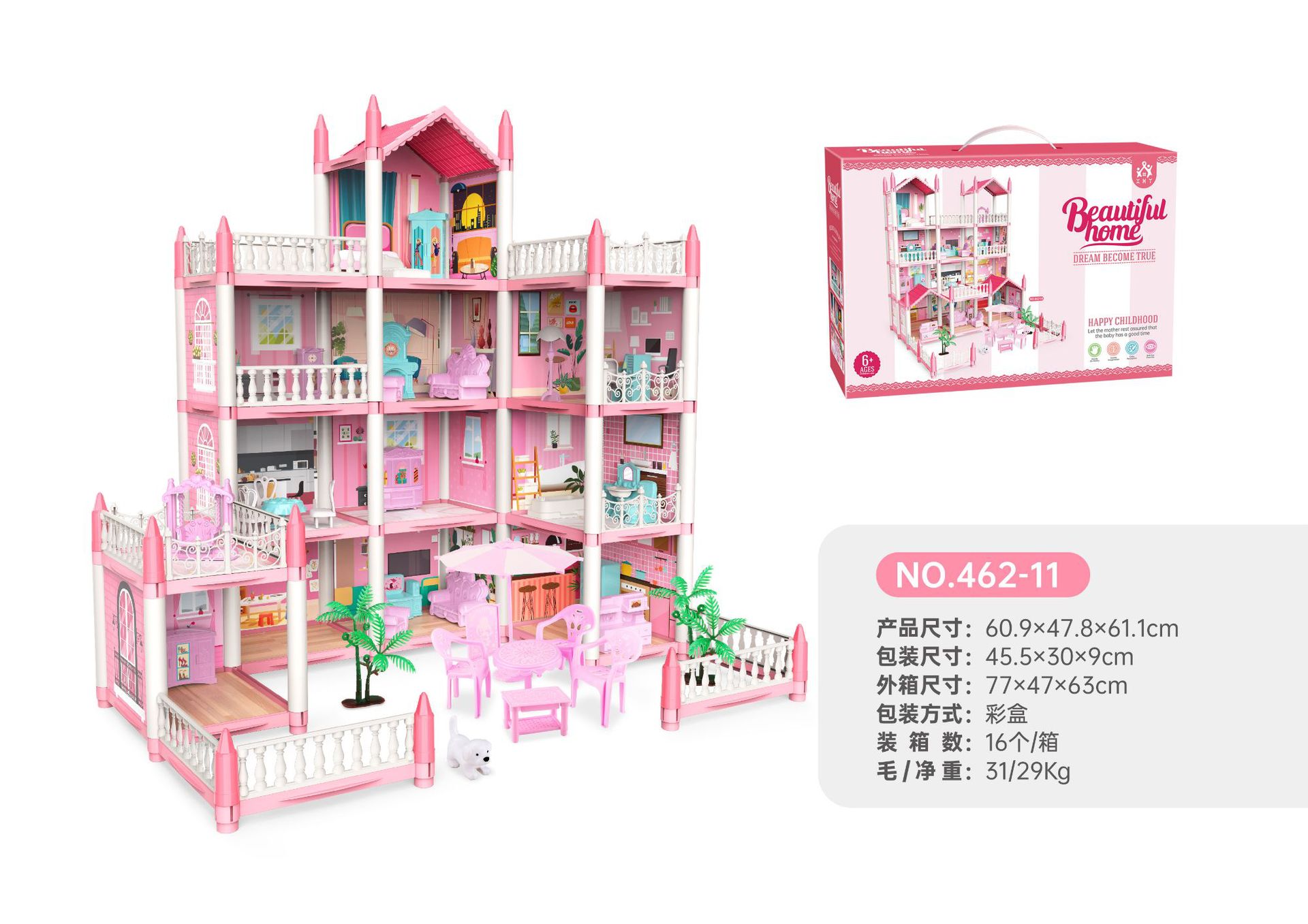 • (A462-14) 핑크색 방 14개 테라스 2개(아이 4명, 조명 2개 포함) (1박스 16박스)