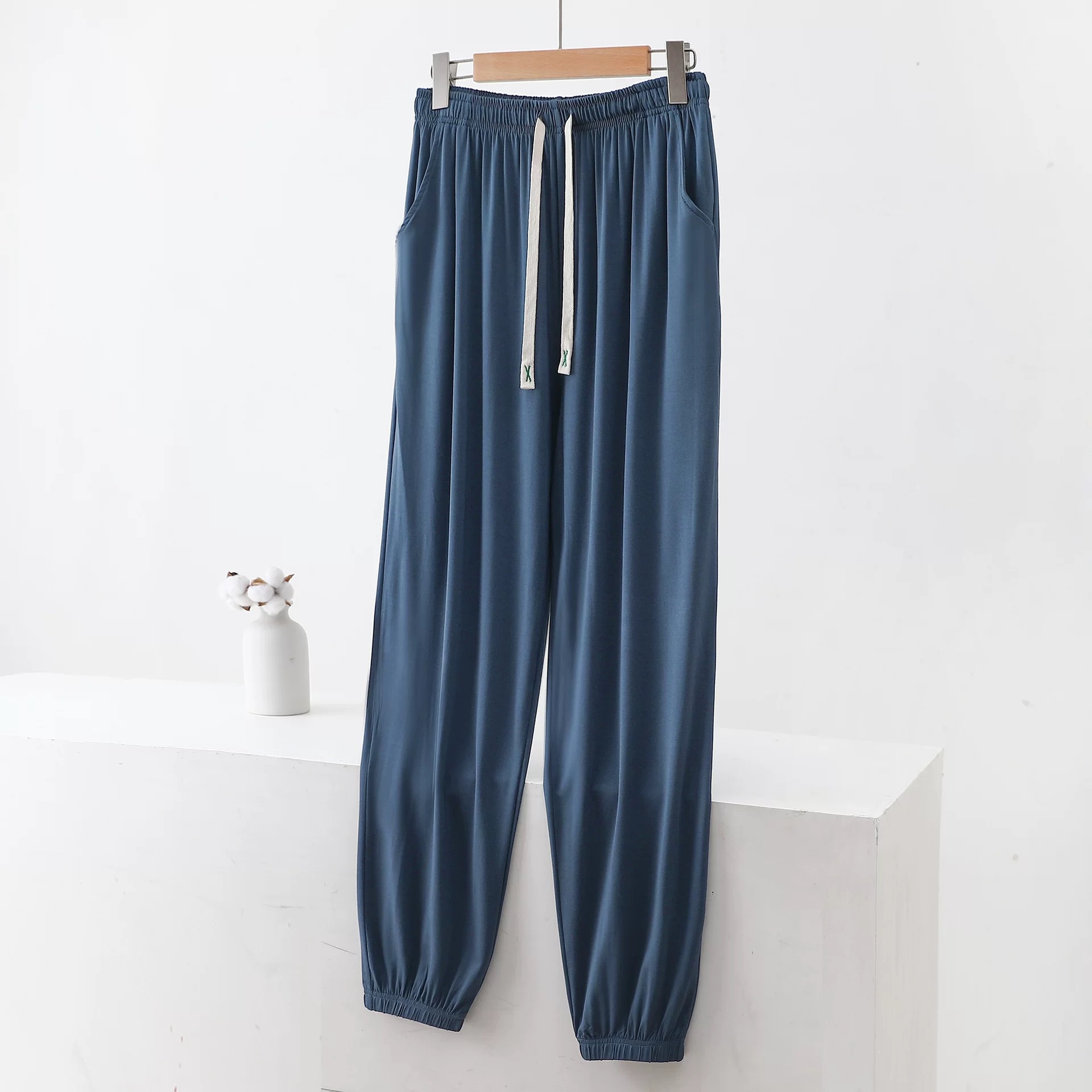 여름 남자의 모달 남자의 아이스 실크 얇은 바지 여름 플러스 사이즈 가정용 바지 안티 모기 바지 에어컨 파자마 바지스토어 가기