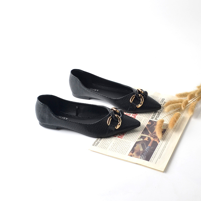 여성용 뾰족코 플랫 슈즈 2024년 신상 봄 가을 요정 신발 다용도 얕은 굽 부드러운 가죽 소프트솔 콩슈즈스토어 가기
