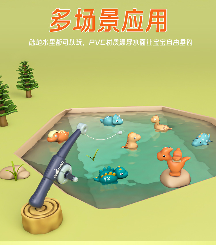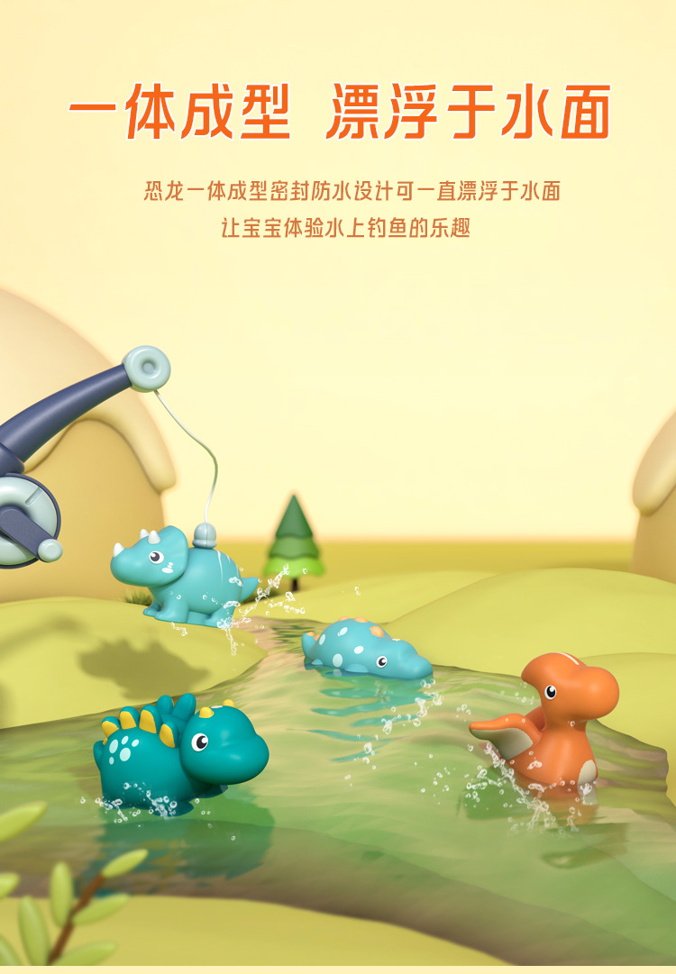 국경 간 핫 마이닝 만화 아기 공룡 어린이 아기 물놀이, 목욕 및 낚시 자기 낚시 장난감 세트