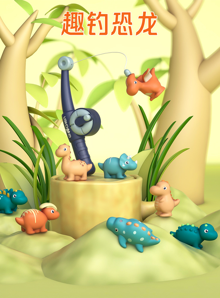 국경 간 핫 마이닝 만화 아기 공룡 어린이 아기 물놀이, 목욕 및 낚시 자기 낚시 장난감 세트스토어 가기