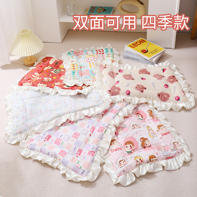 2023년 가을 겨울 신상품 사계절용 비숑 강아지 침대 레이스 장식 따뜻하고 방한 기능이 있는 가을 겨울 애완동물 매트스토어 가기