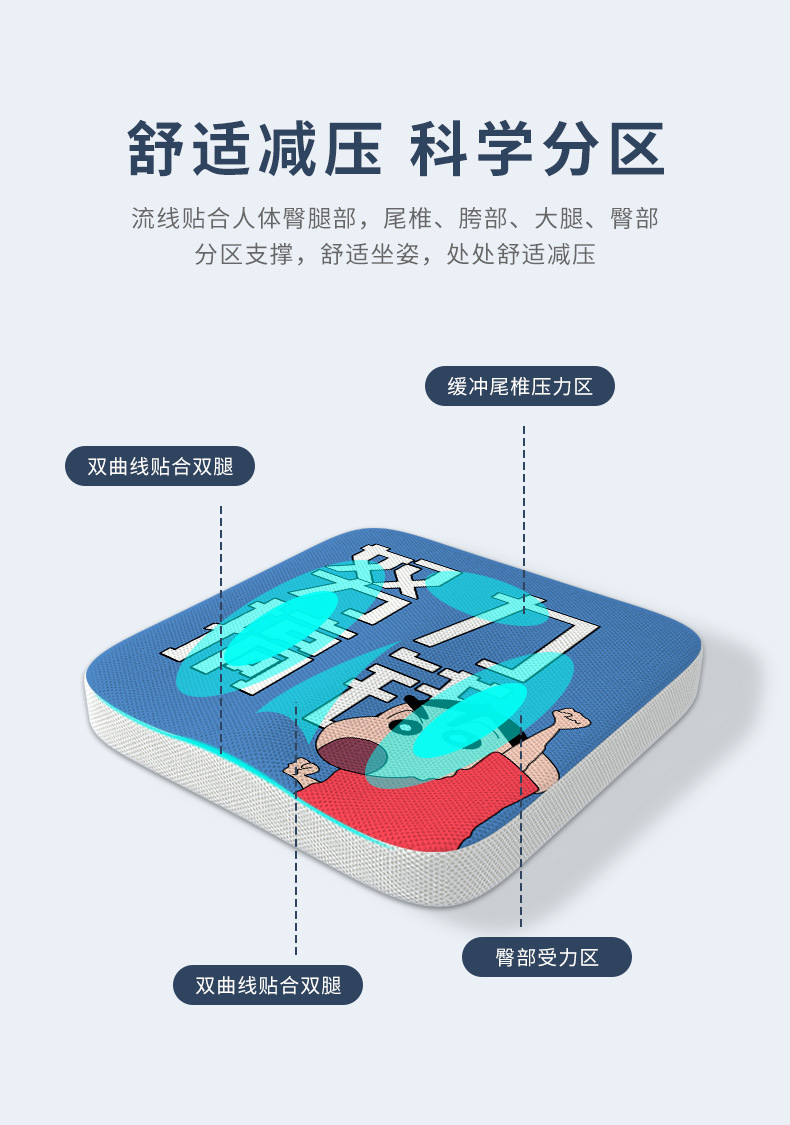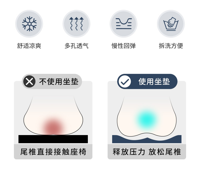 메모리폼 시트쿠션, 사무실 장시간 착석용 편안한 엉덩이 쿠션, 직장인 및 학생용 두꺼운 시트쿠션, 여름철 편안하고 통기성 좋음