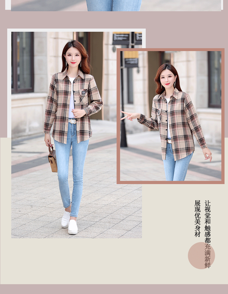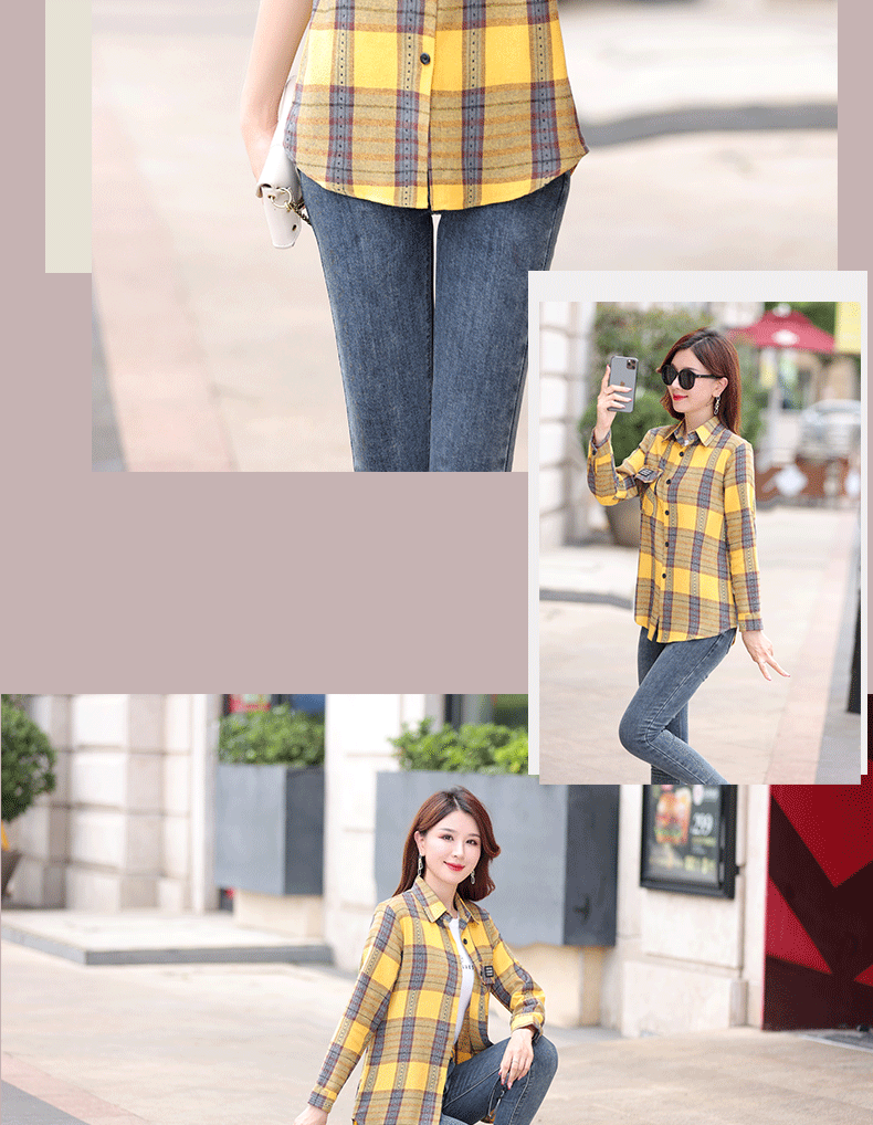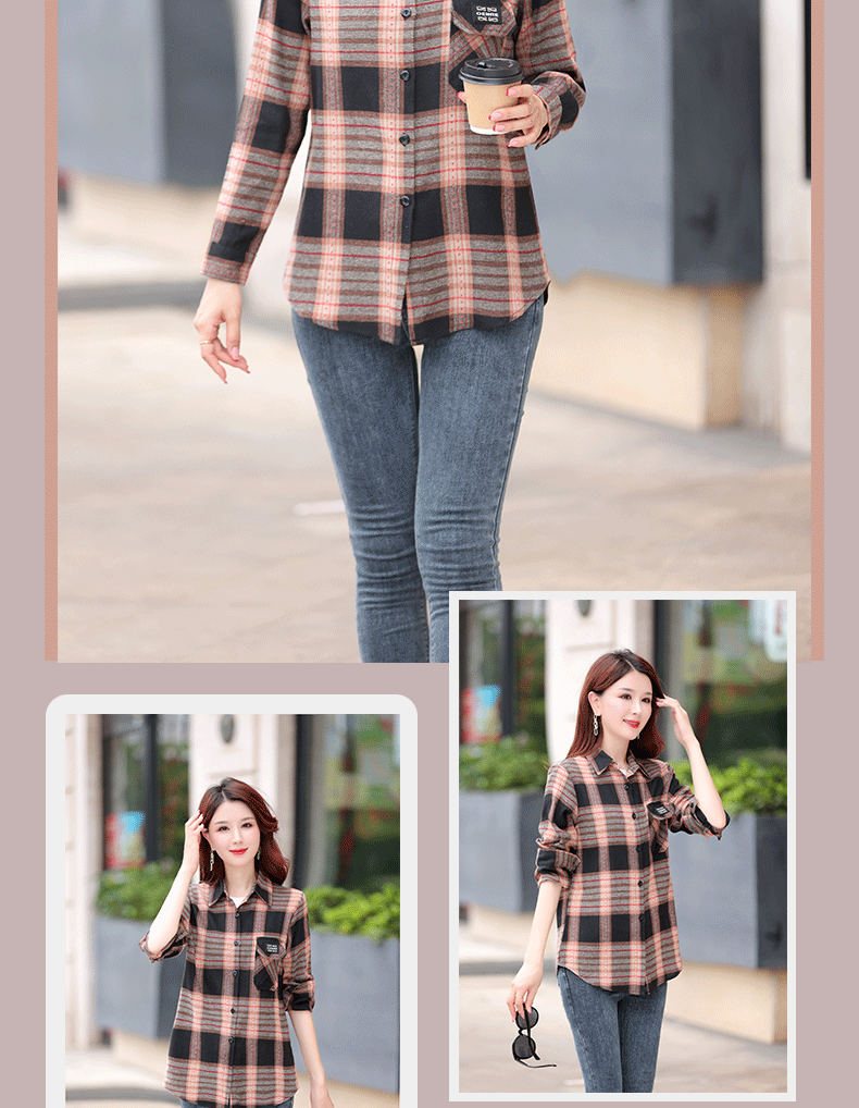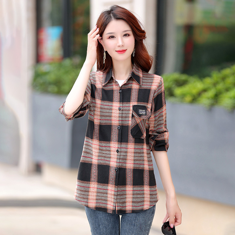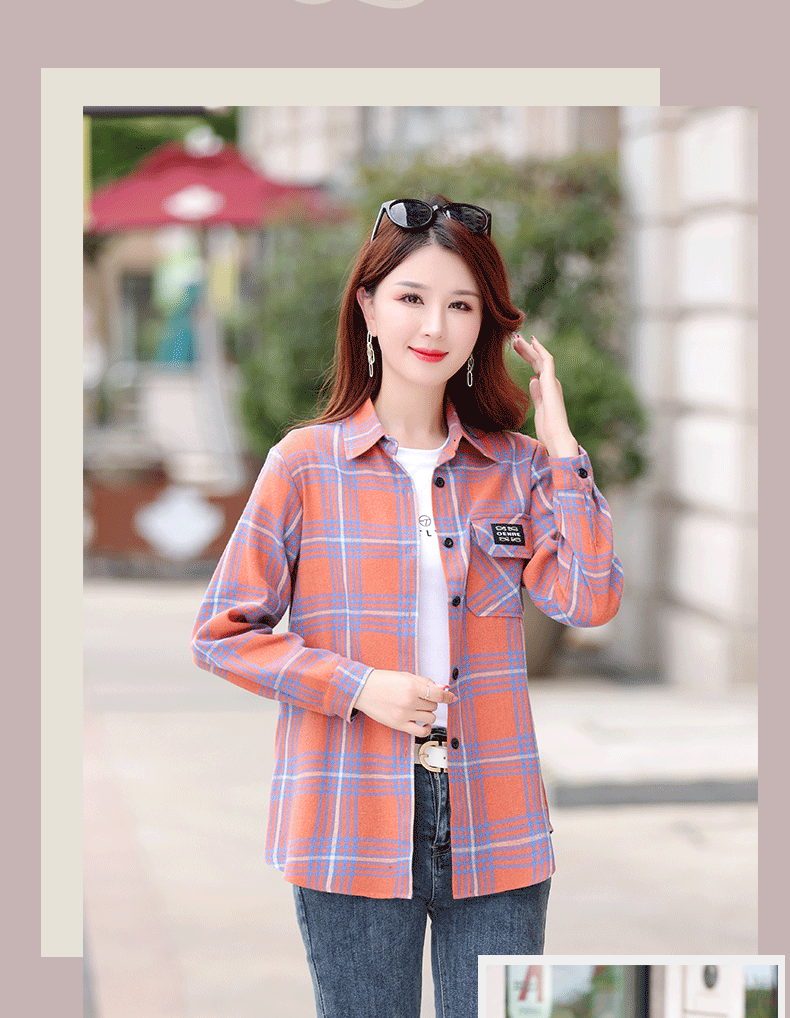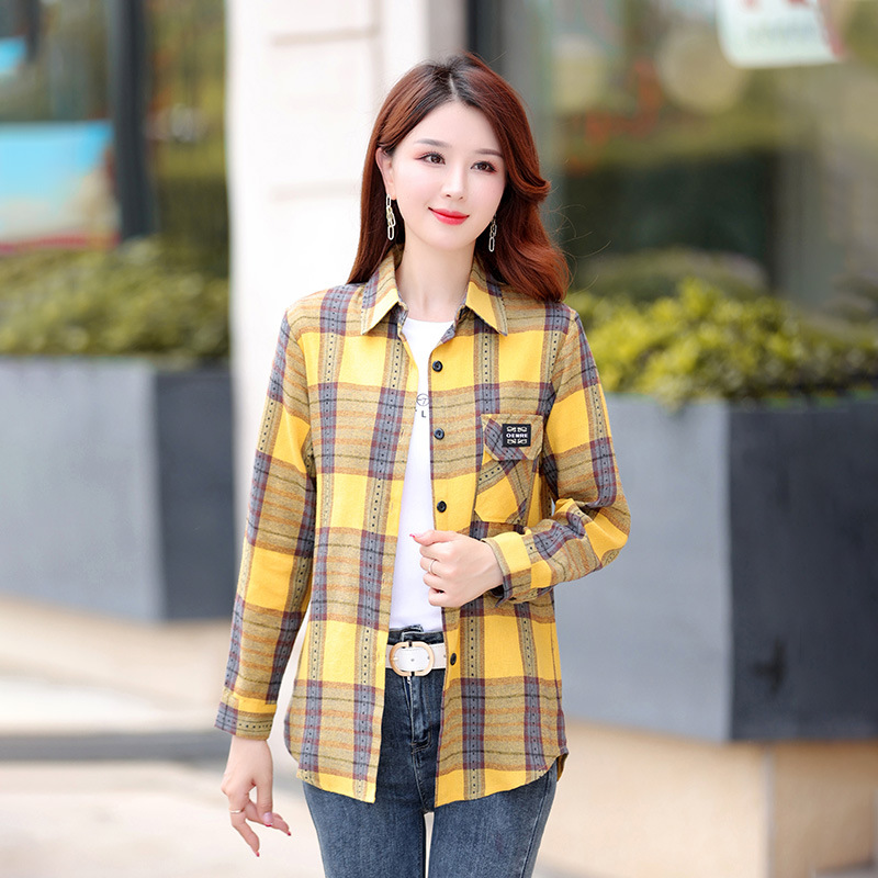 2025년 가을 신상 한국 스타일 루즈핏 긴팔 셔츠 여성용 자켓 기모 레트로 다용도 체크무늬 셔츠 여성용 면스토어 가기