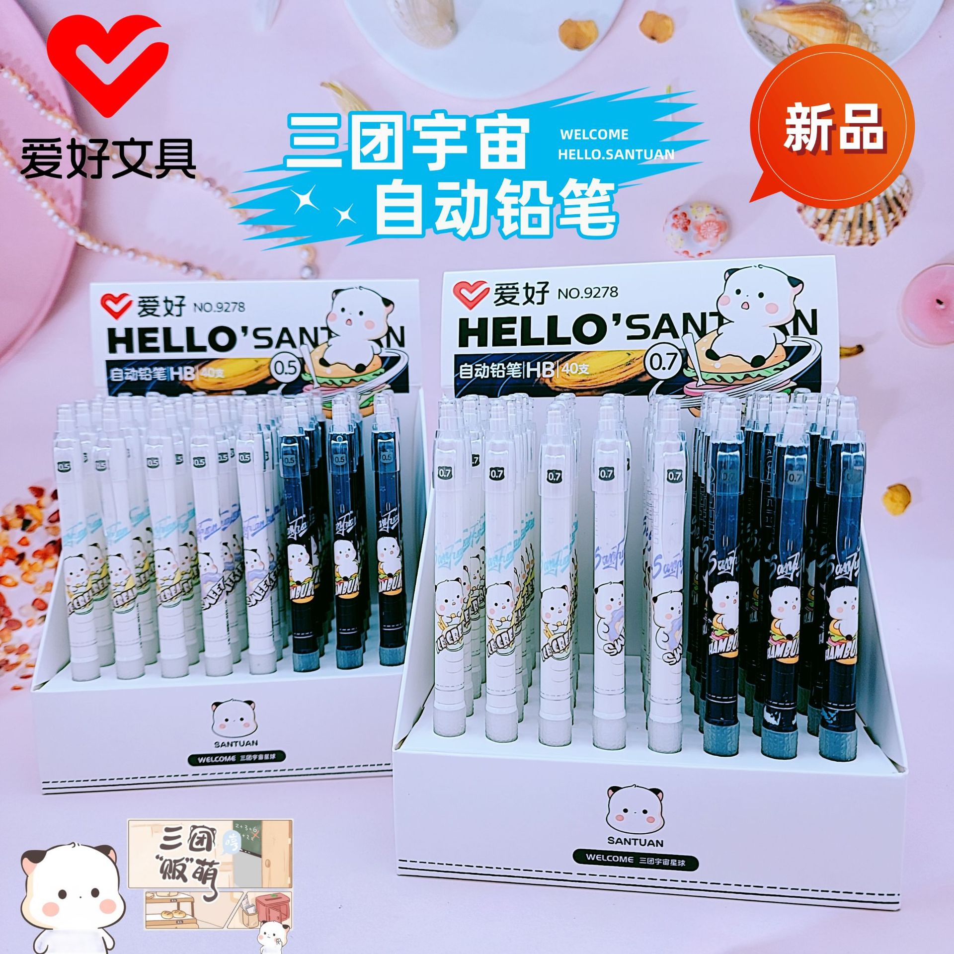 爱好文具新品9278三团卡通自动铅笔 学生HB书写活动铅笔批发