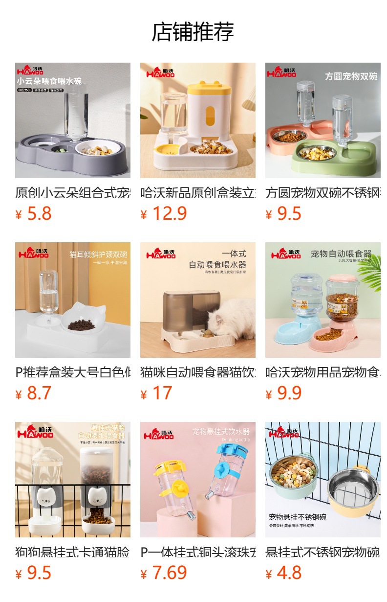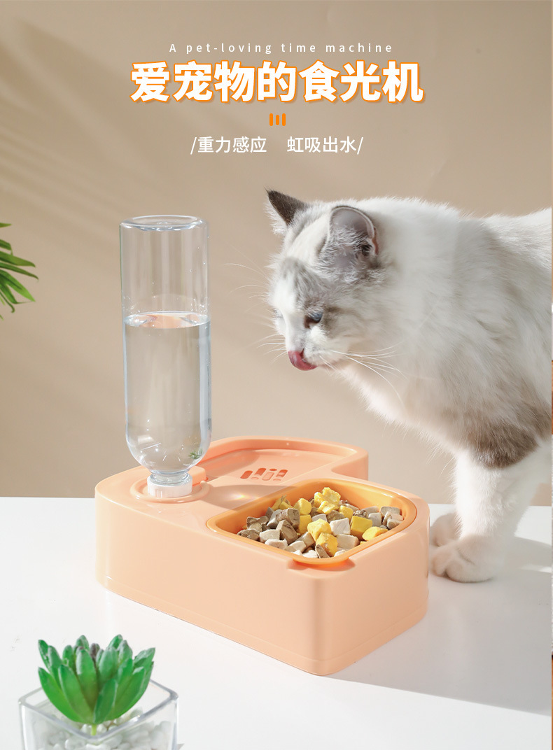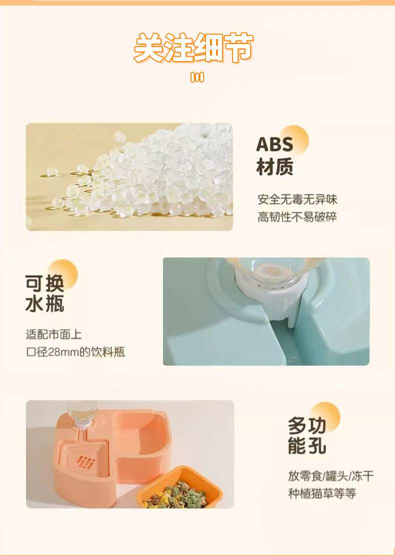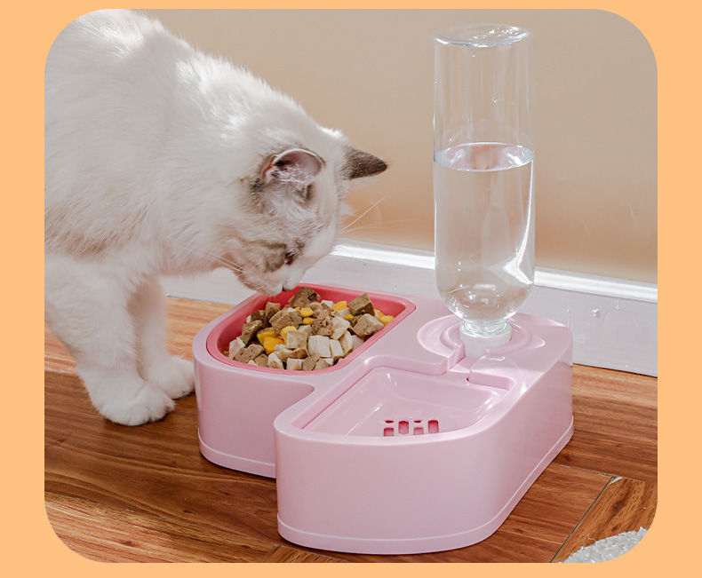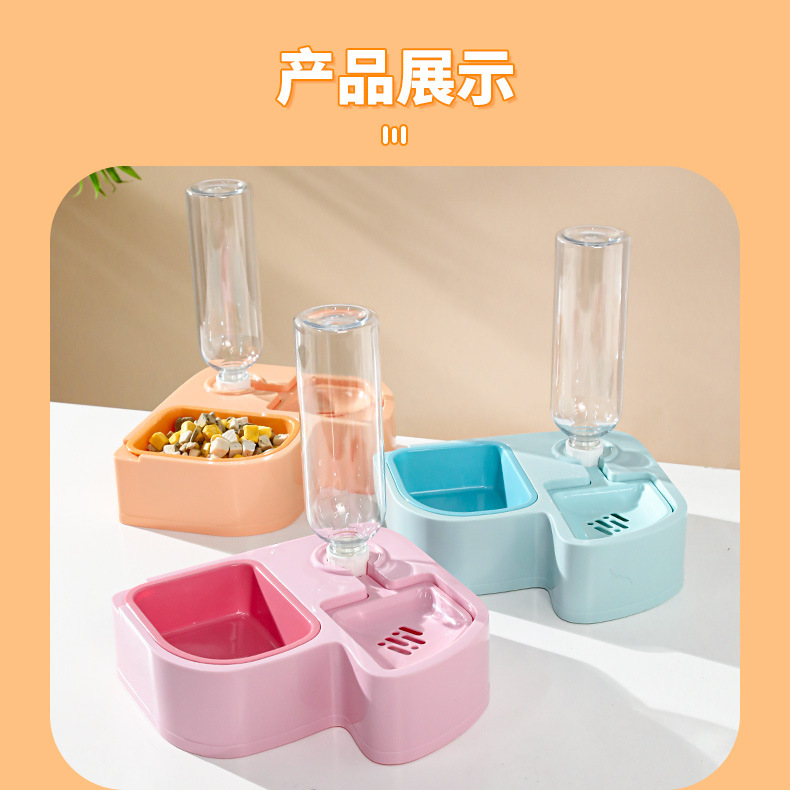 Z 애완동물 급수기 다기능 두더새 물과 사료 일체형 플라스틱 이중 그릇 강아지 밥그릇 고양이 물그릇스토어 가기