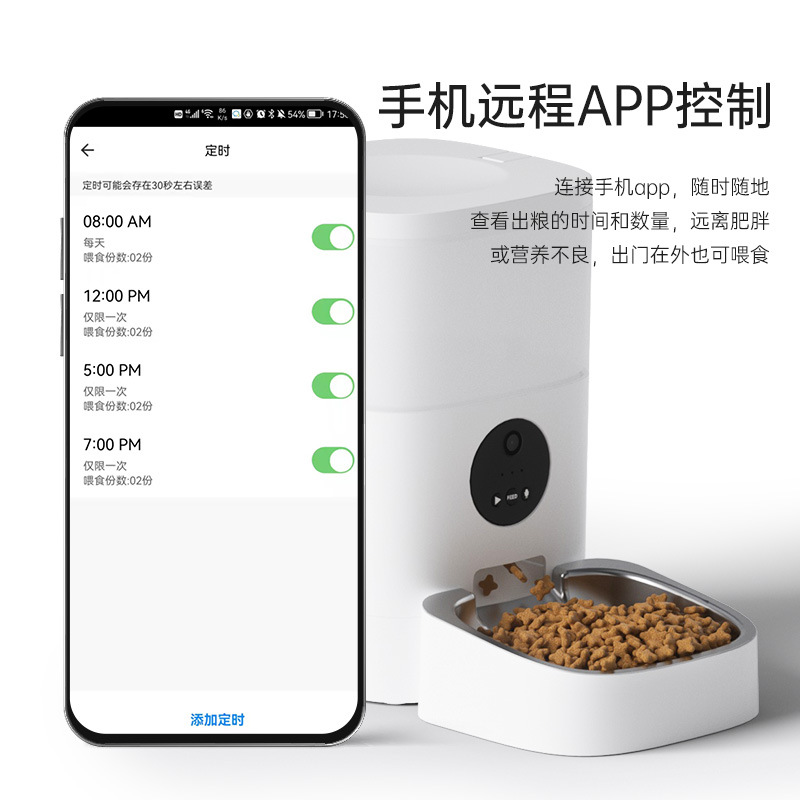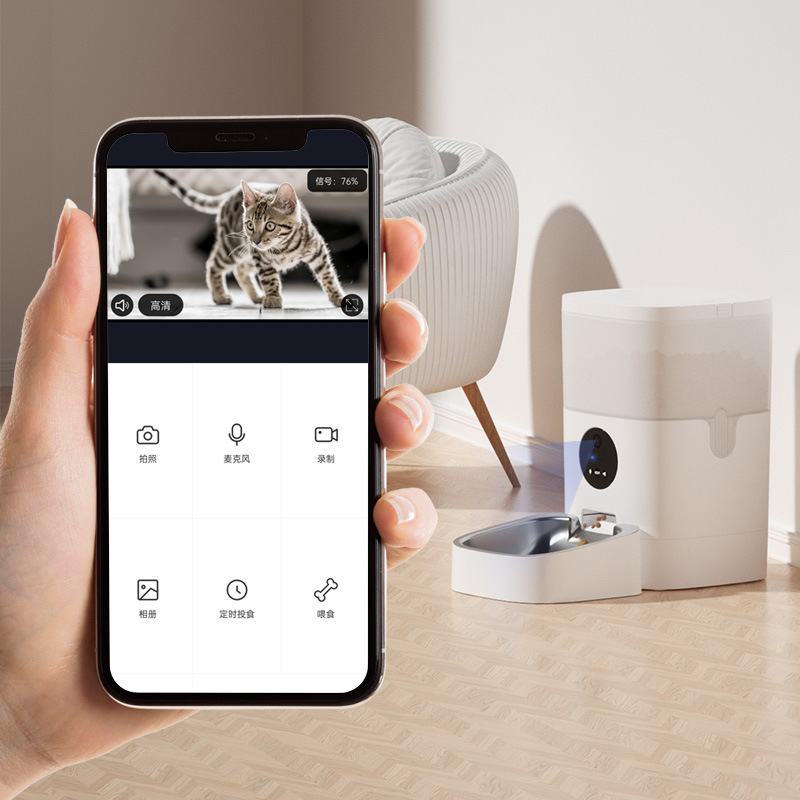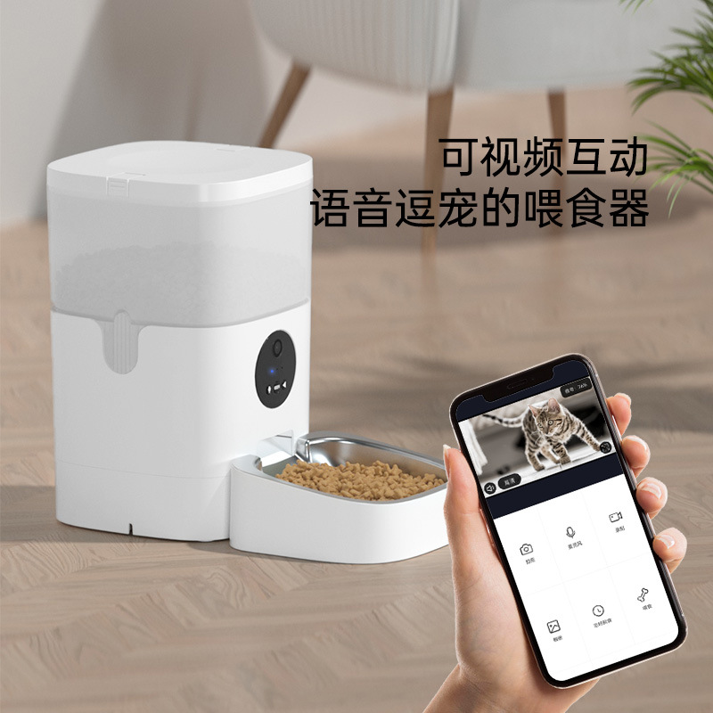 애완동물 지능형 자동 급식기 6리터 대용량 비디오 음성 버튼 스마트 모델 원격 제어 고양이와 강아지에게 적합