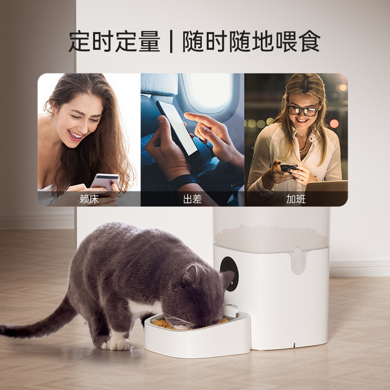 애완동물 지능형 자동 급식기 6리터 대용량 비디오 음성 버튼 스마트 모델 원격 제어 고양이와 강아지에게 적합스토어 가기