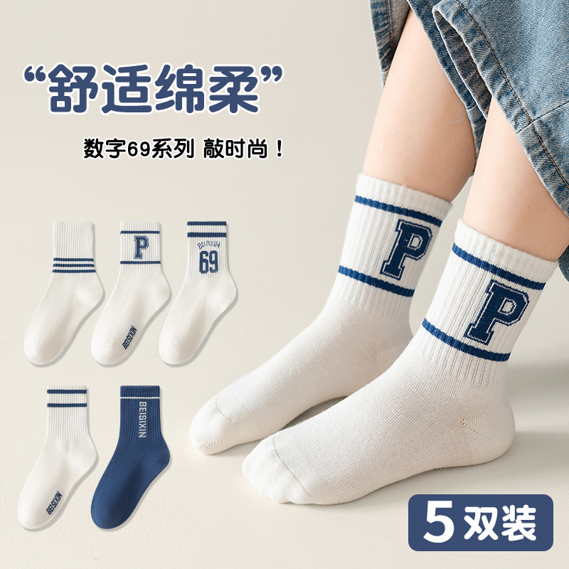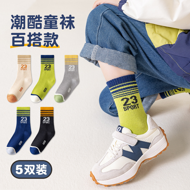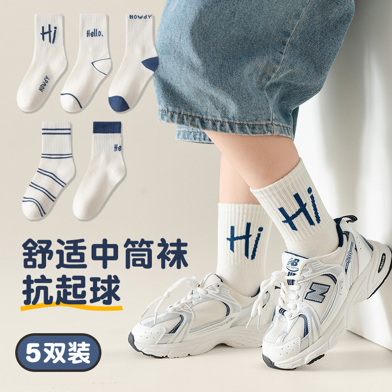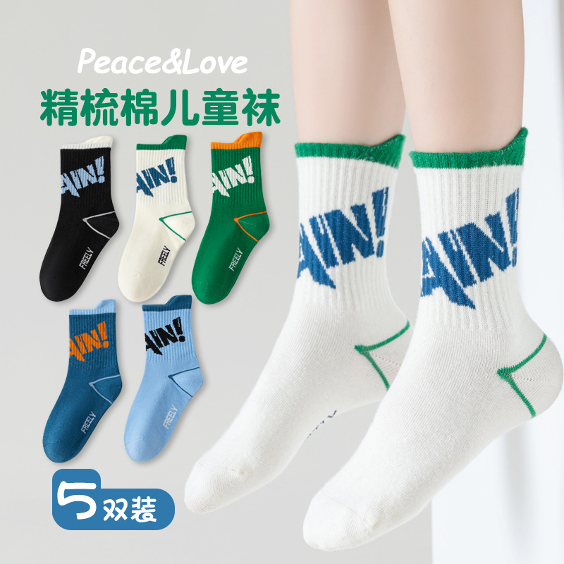 2026 아동용 양말 가을 겨울 영국풍 트렌디 양말 봄 가을 통기성 중목면 양말 남아 여아 영어 스포츠 양말